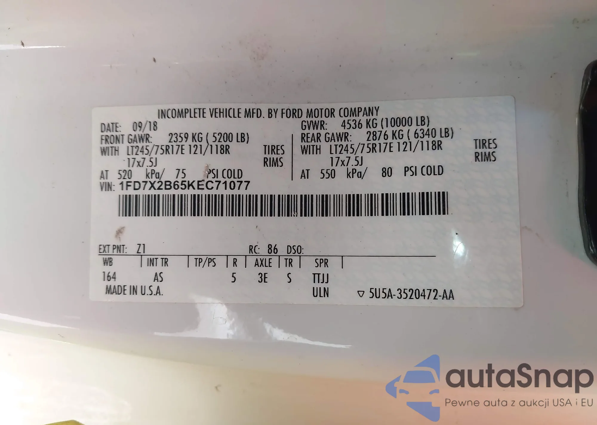 VIN: 1FD7X2B65KEC71077