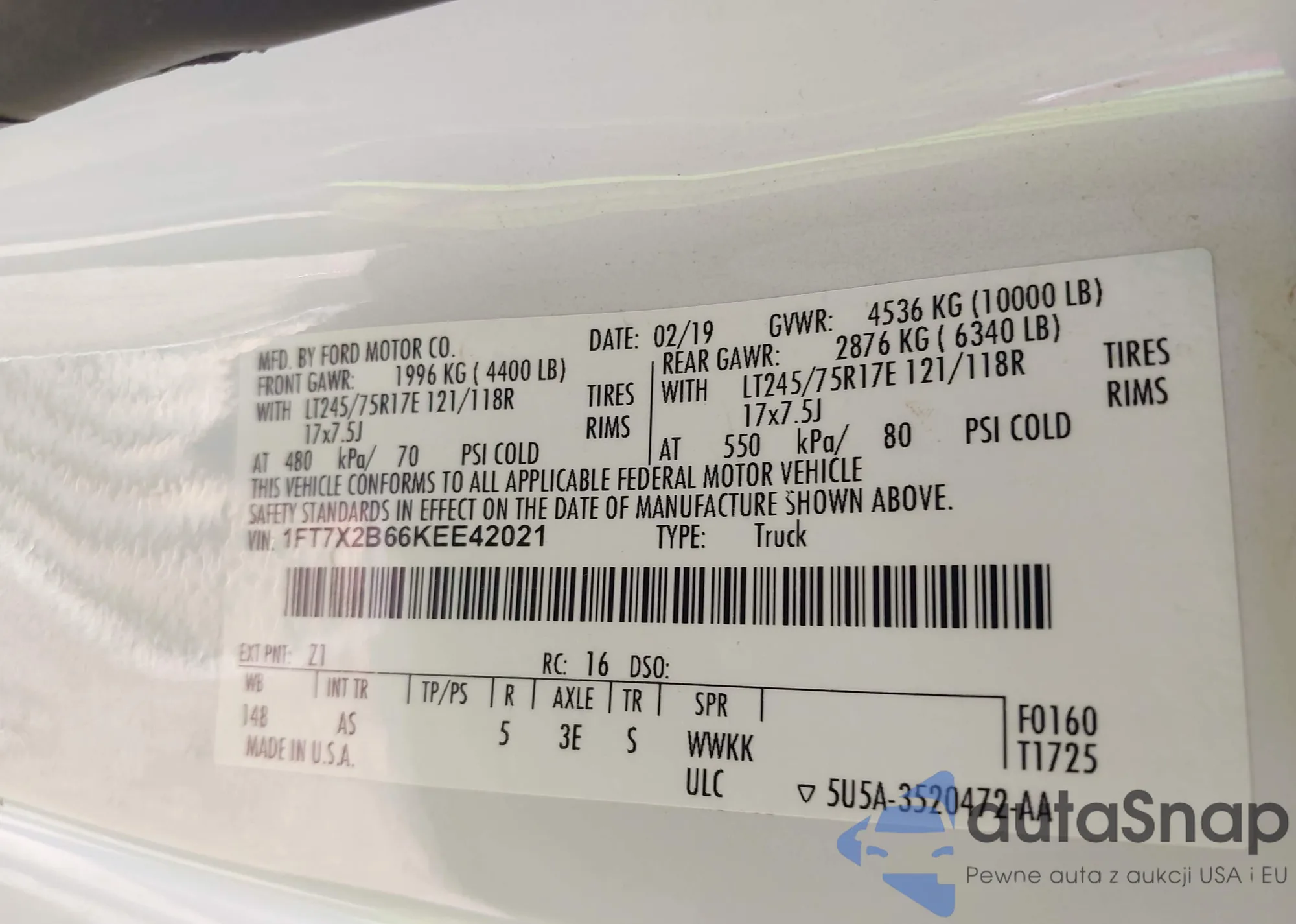 VIN: 1FT7X2B66KEE42021