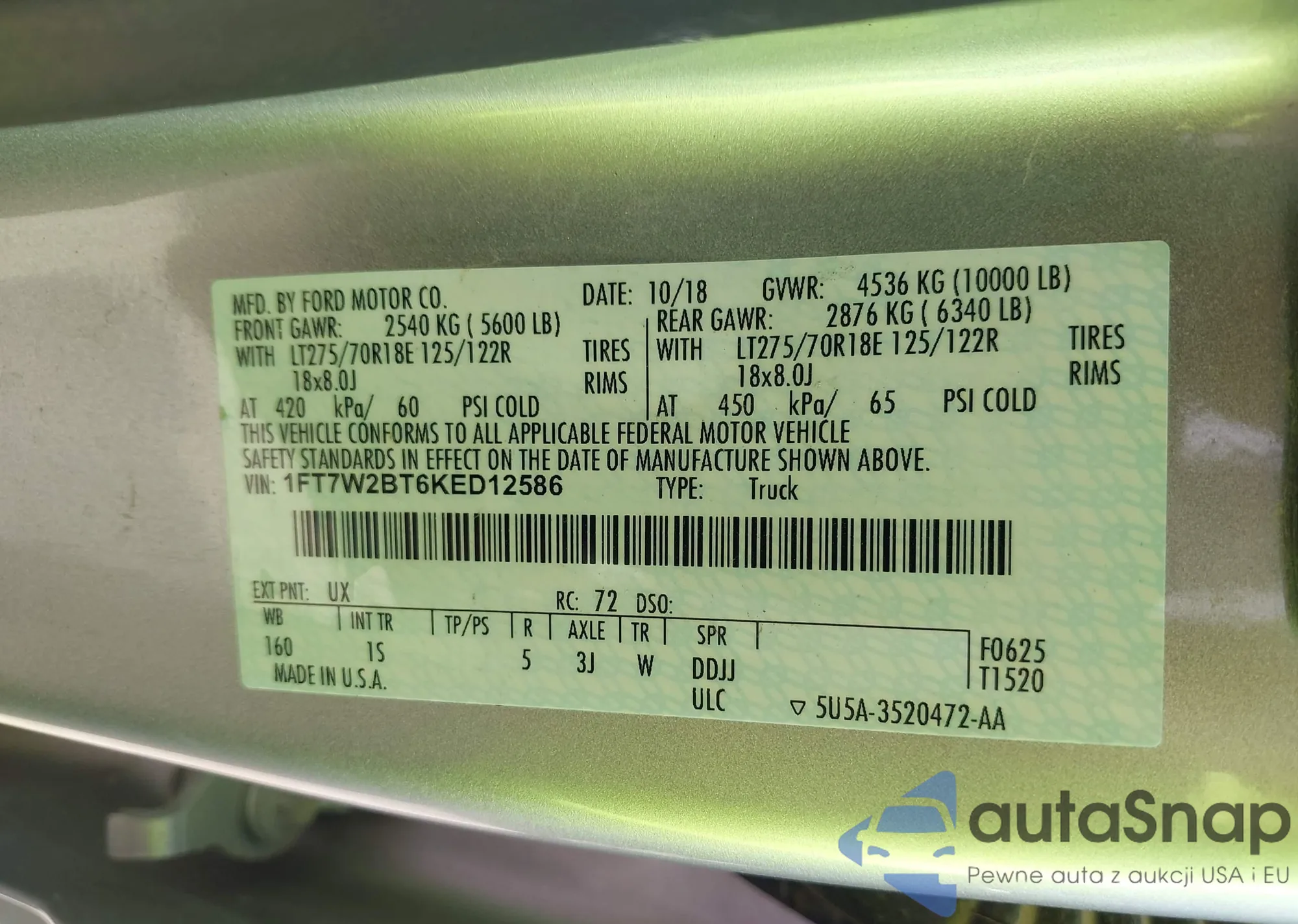 VIN: 1FT7W2BT6KED12586