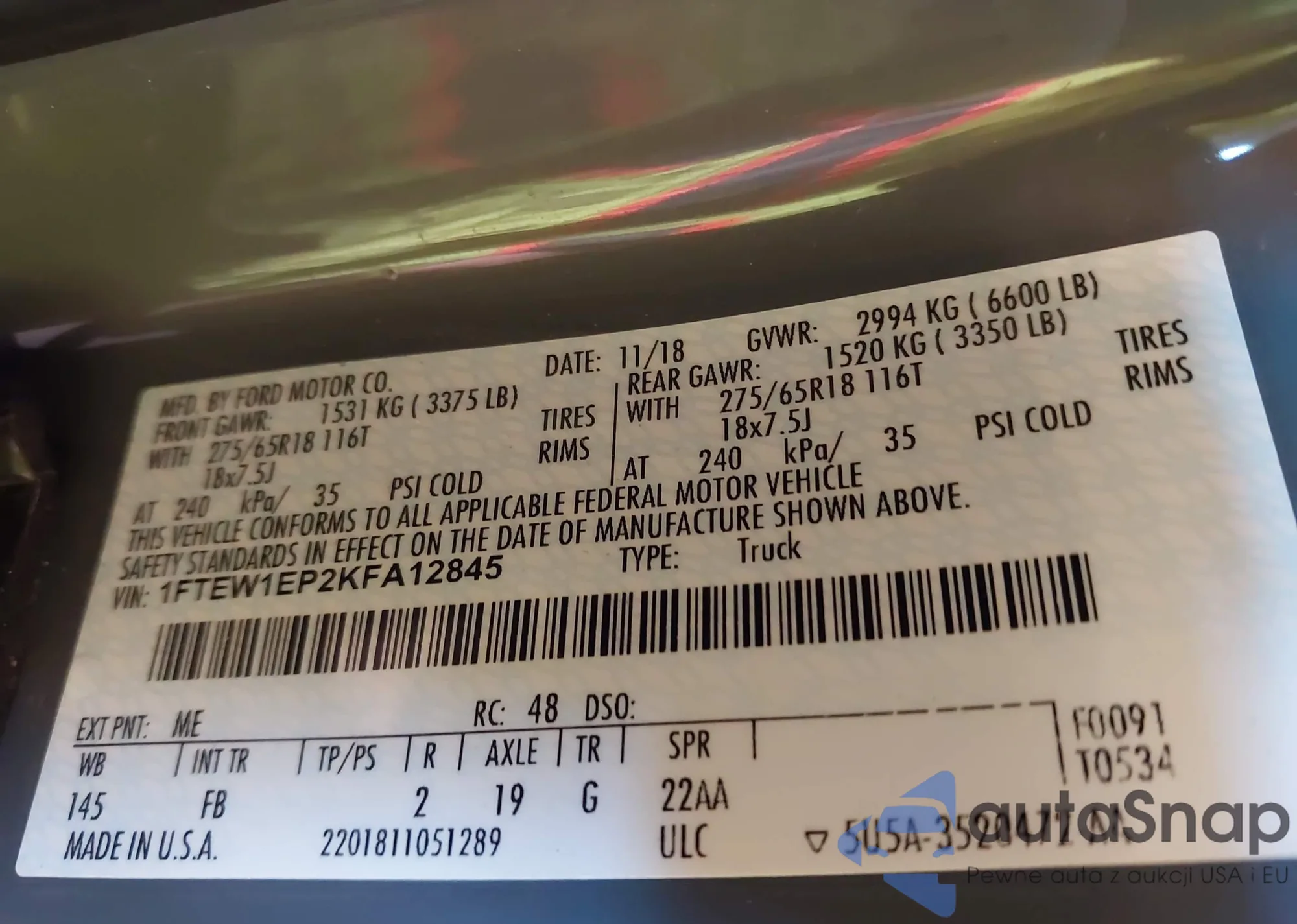 VIN: 1FTEW1EP2KFA12845