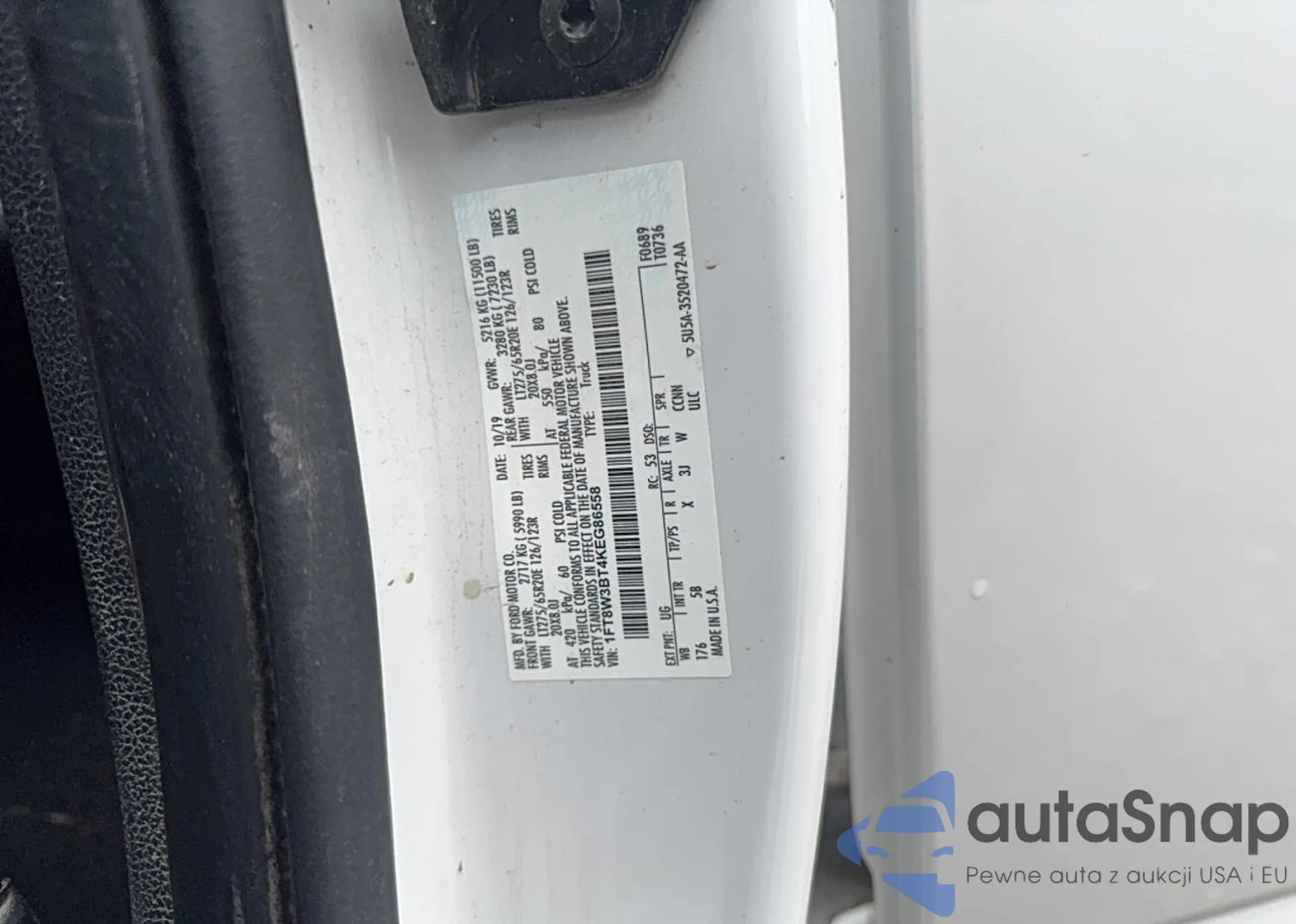 VIN: 1FT8W3BT4KEG86558