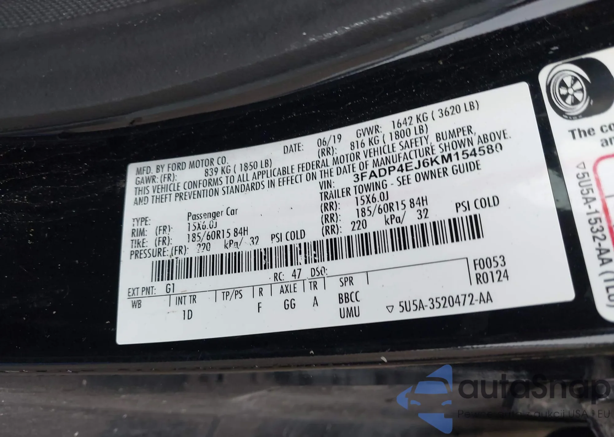 VIN: 3FADP4EJ6KM154580