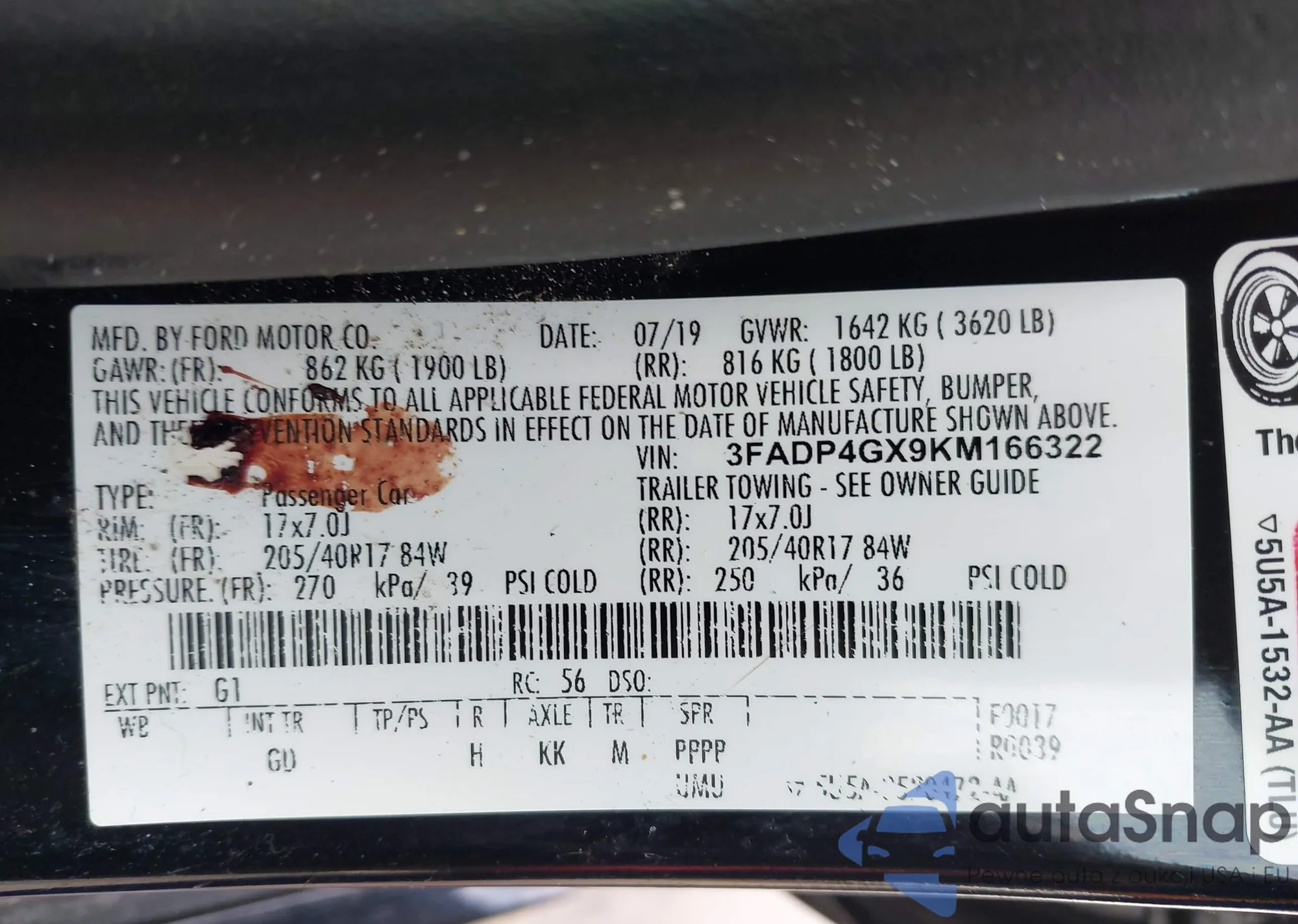 • VIN: 3FADP4GX9KM166322