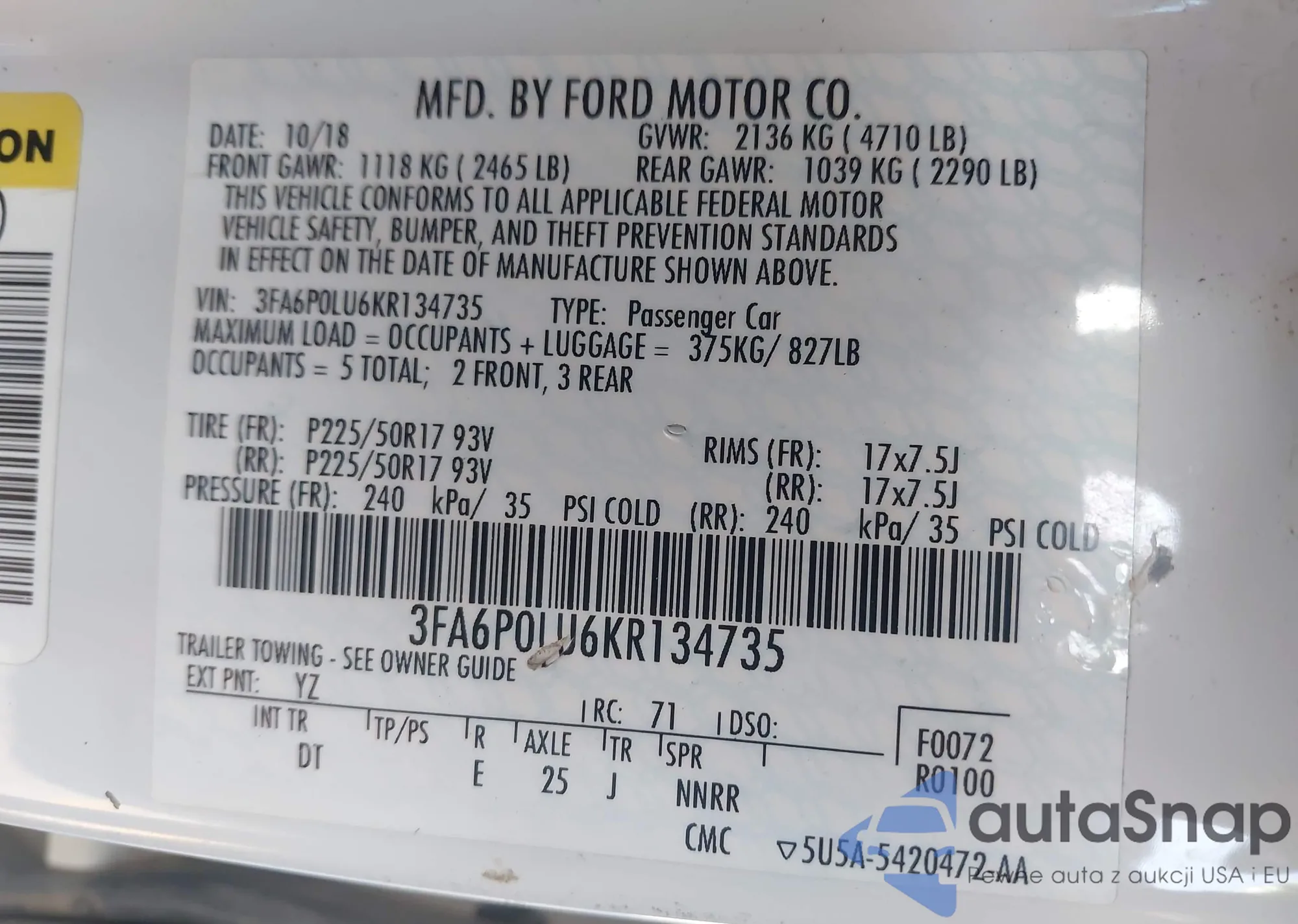 VIN: 3FA6P0LU6KR134735