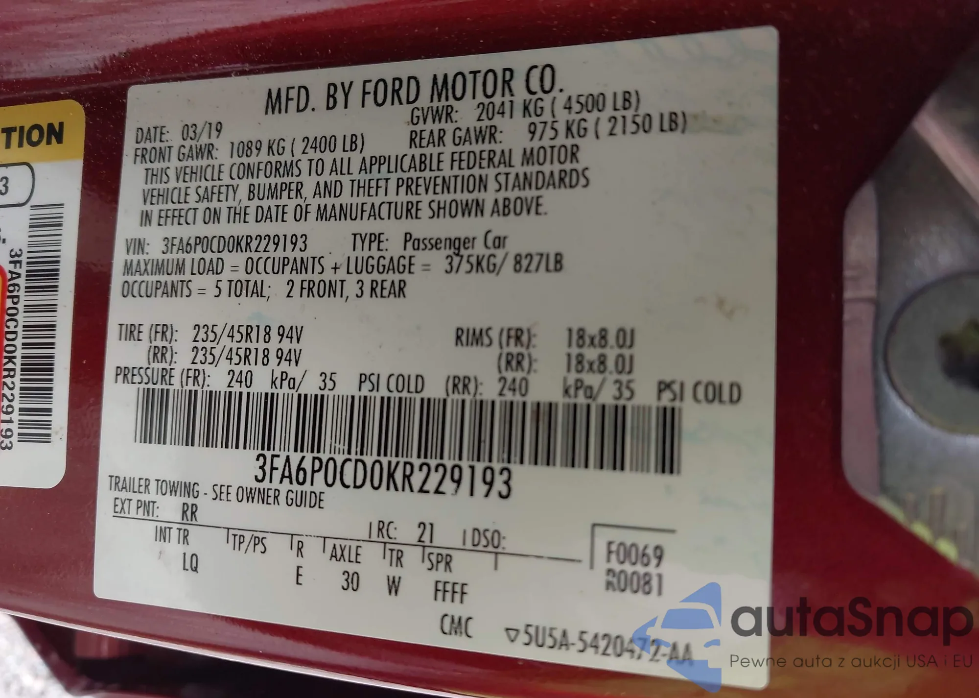 VIN: 3FA6P0CD0KR229193
