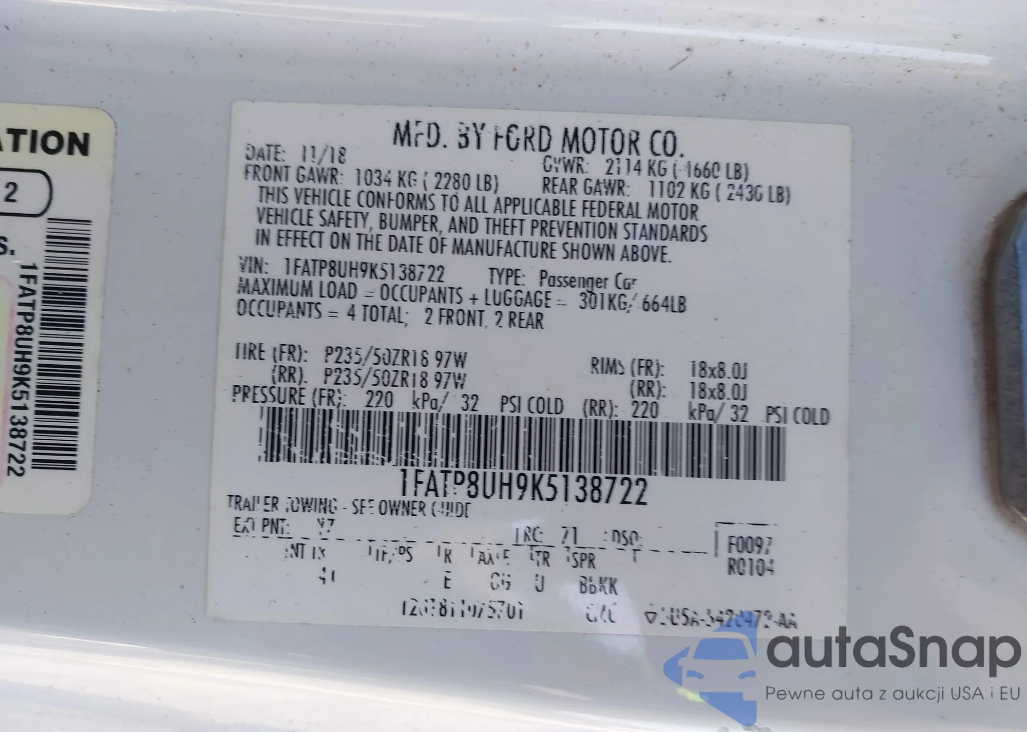 VIN: 1FATP8UH9K5138722
