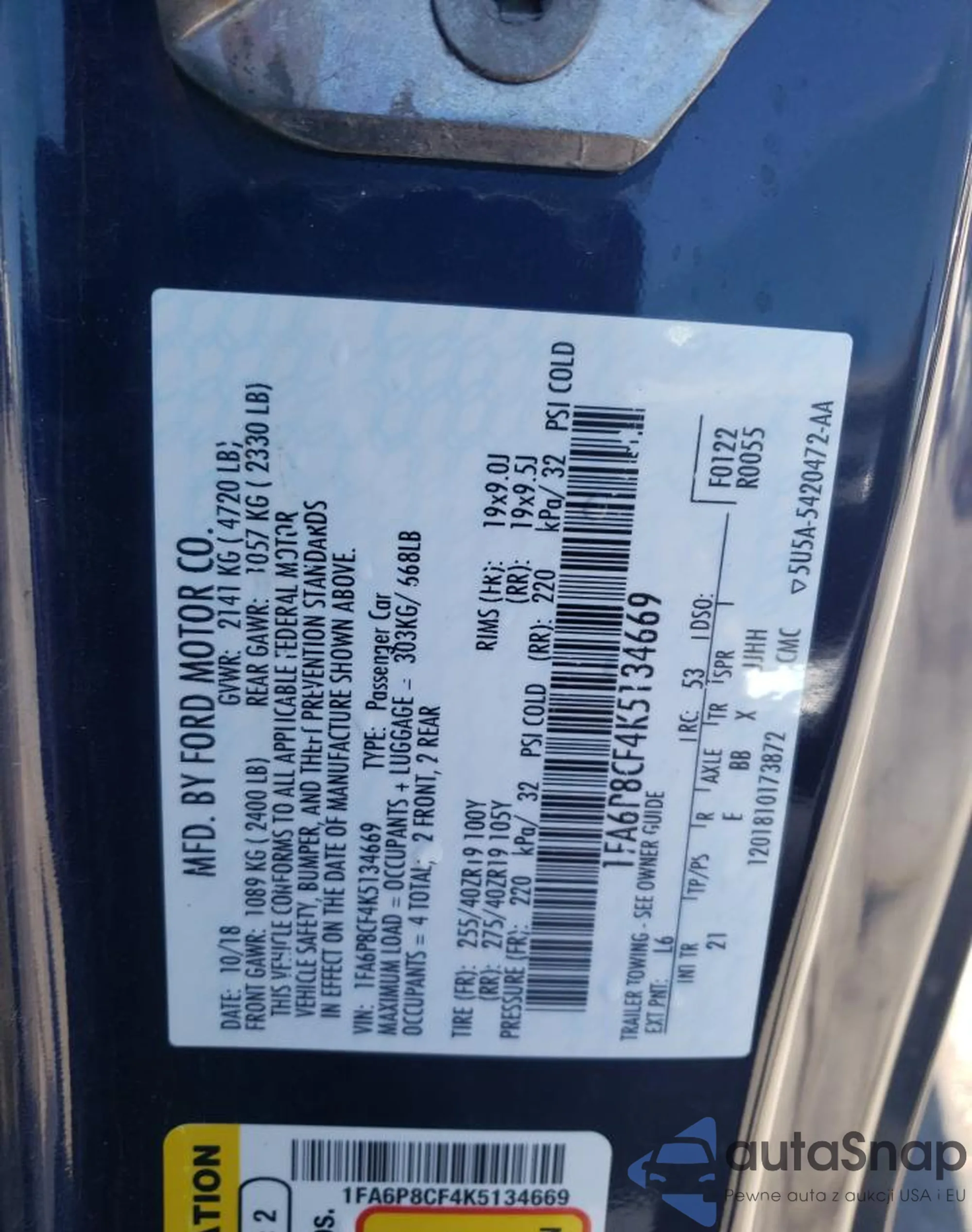 VIN: 1FA6P8CF4K5134669