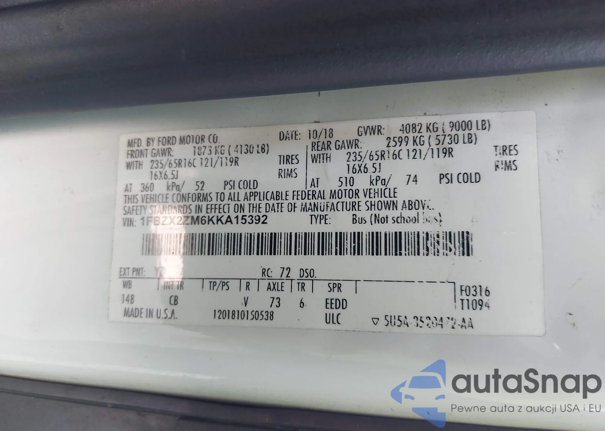VIN: 1FBZX2ZM6KKA15392