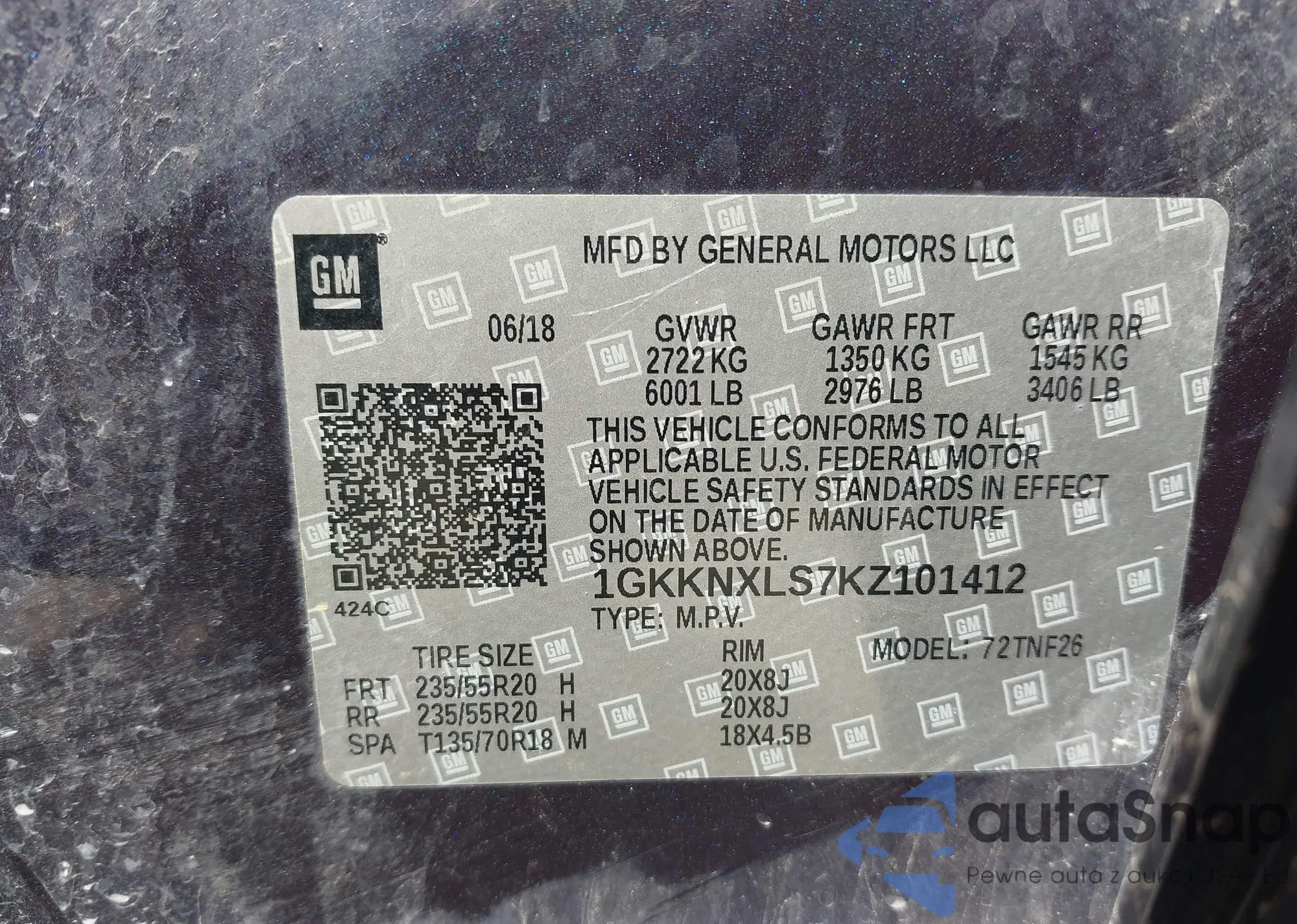 VIN: 1GKKNXLS7KZ101412