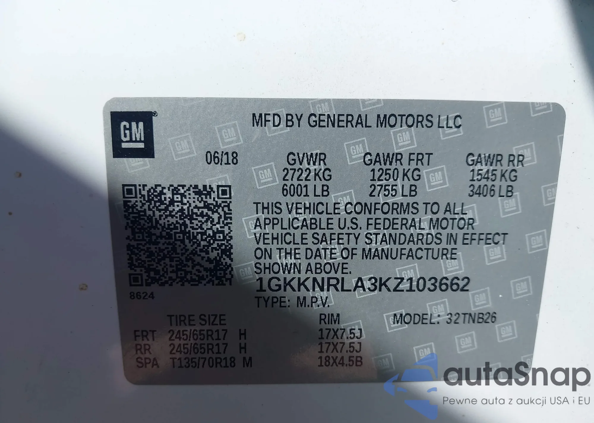 VIN: 1GKKNRLA3KZ103662