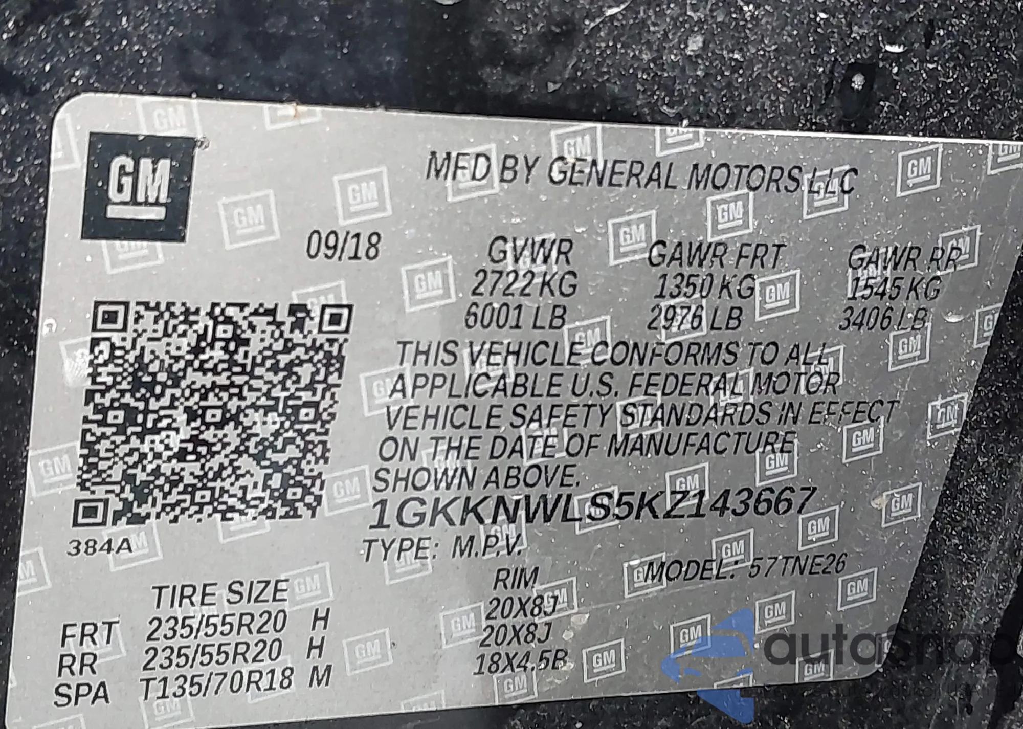 VIN: 1GKKNWLS5KZ143667