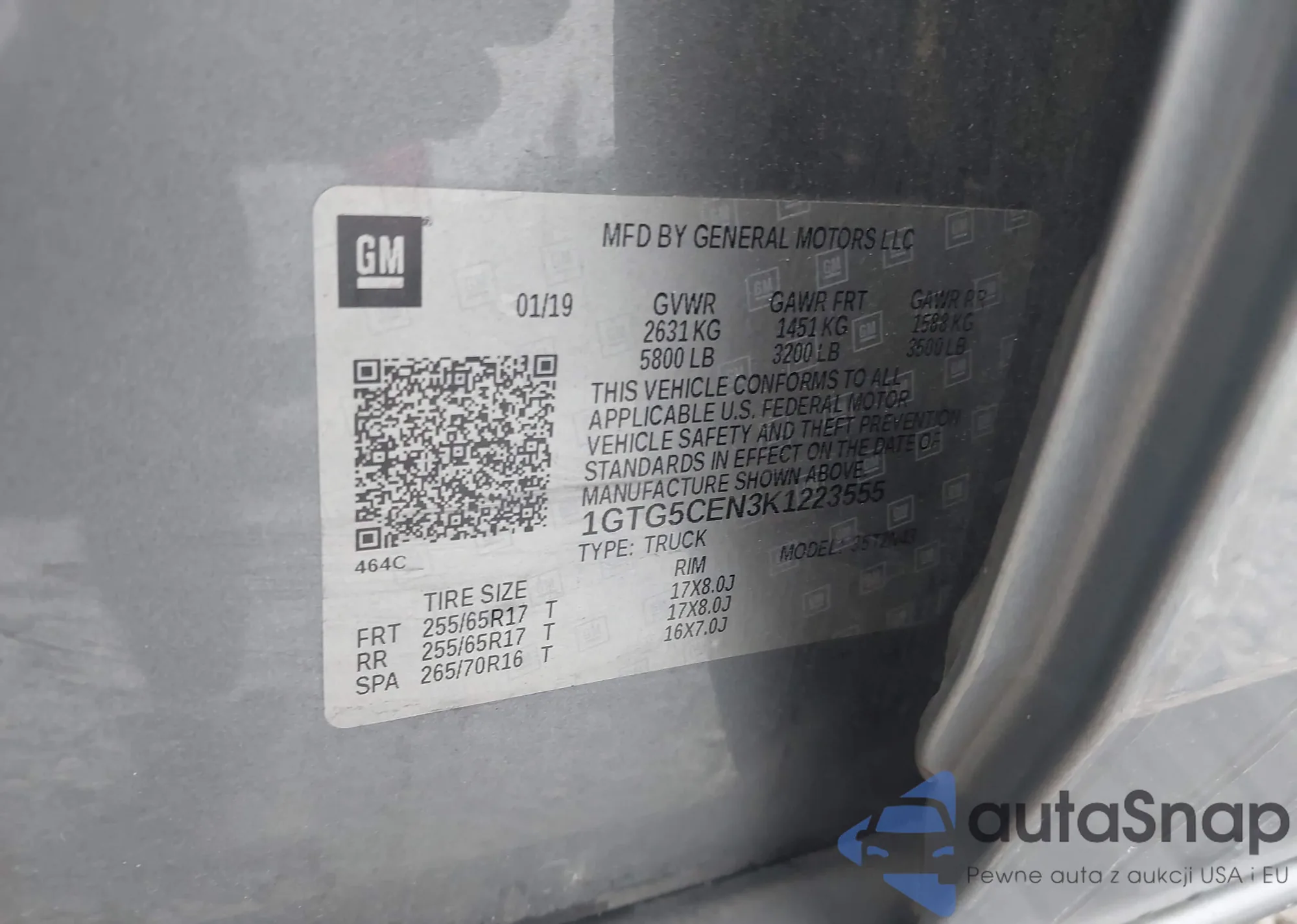 The car GMC Canyon 2019 (VIN 1GTG5CEN3K1223555) has not been auctioned before (0 auctions). The documents are clean, and the mileage matches or is below the market average. Sold by an insurance company – we recommend purchase. Delivery to the port will take approx. 6–8 weeks.