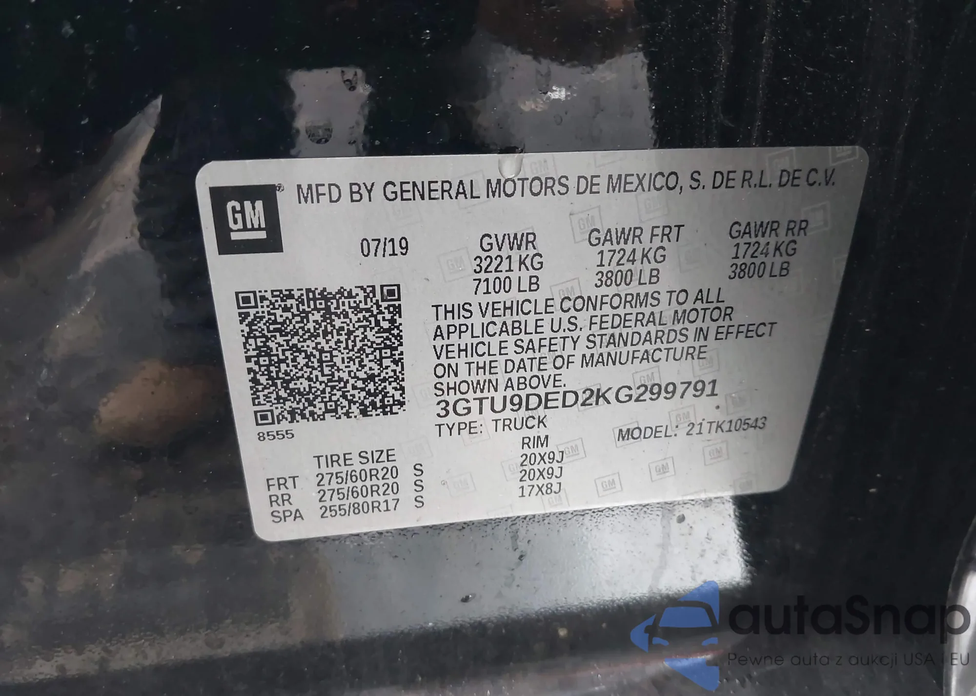 VIN: 3GTU9DED2KG299791