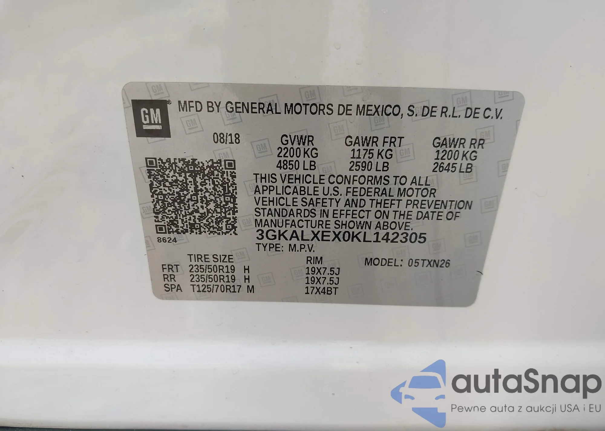 VIN: 3GKALXEX0KL142305