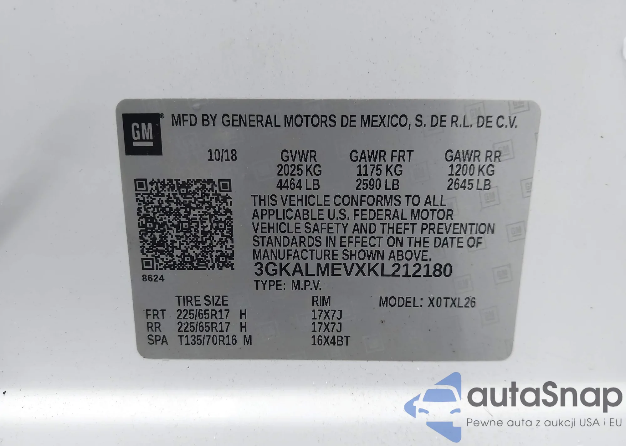 VIN: 3GKALMEVXKL212180