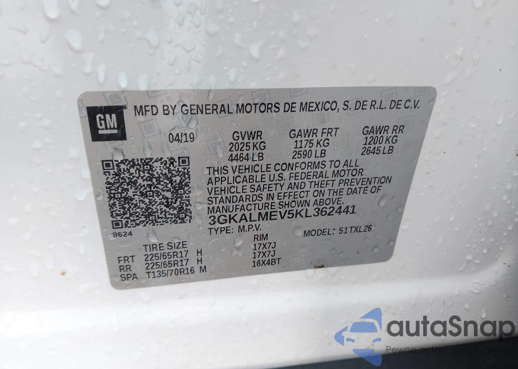 VIN: 3GKALMEV5KL362441