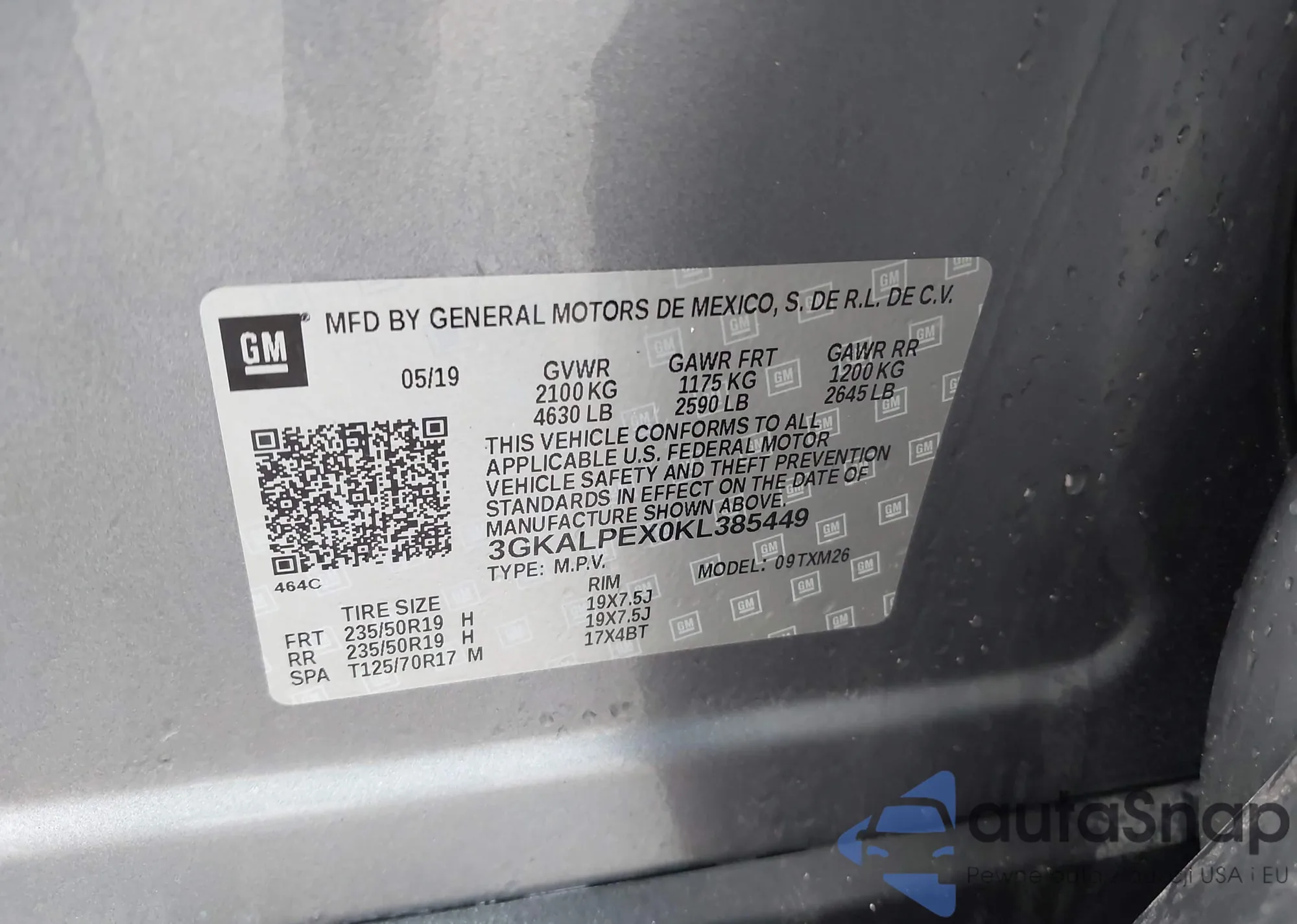 VIN: 3GKALPEX0KL385449