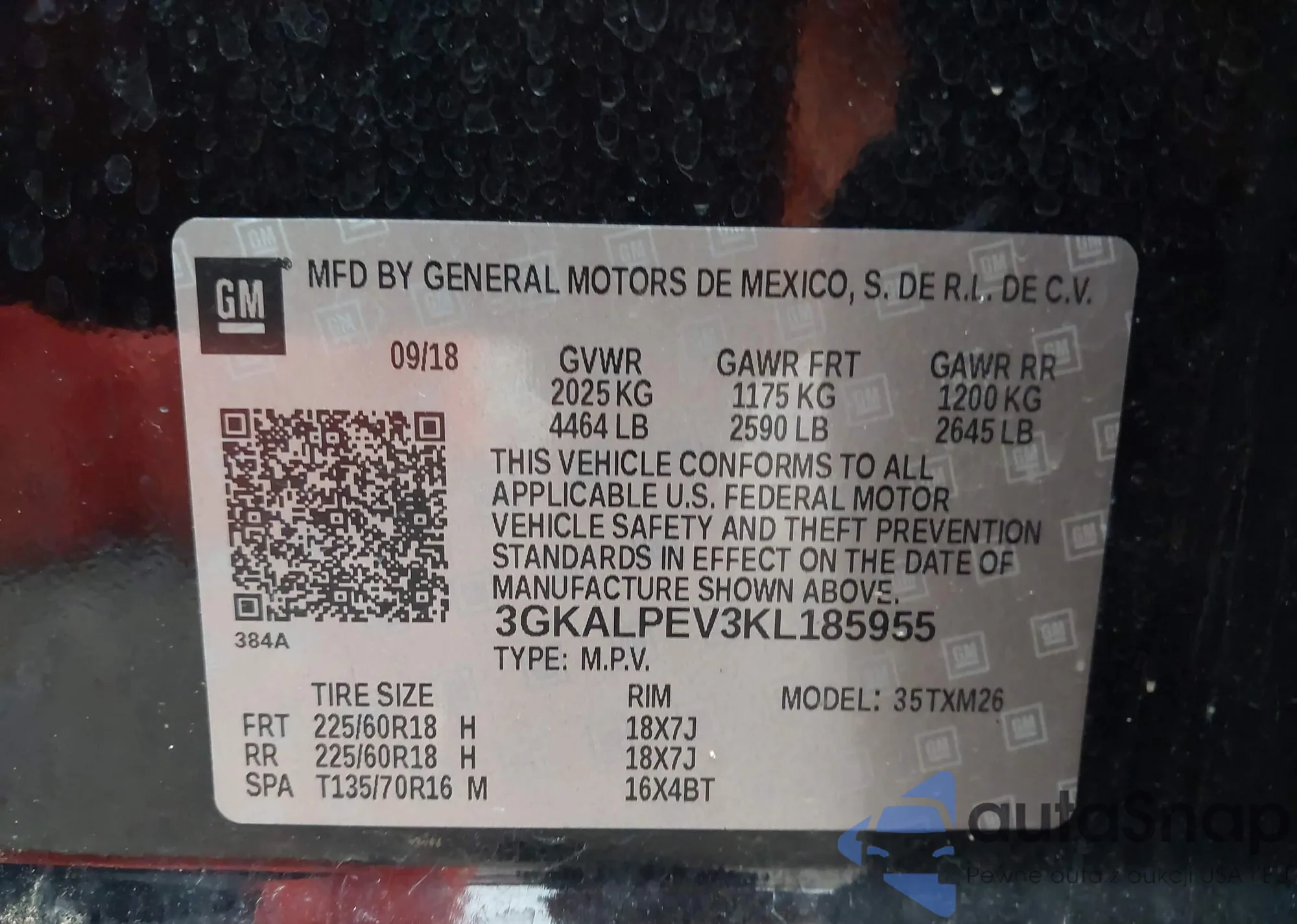 VIN: 3GKALPEV3KL185955
