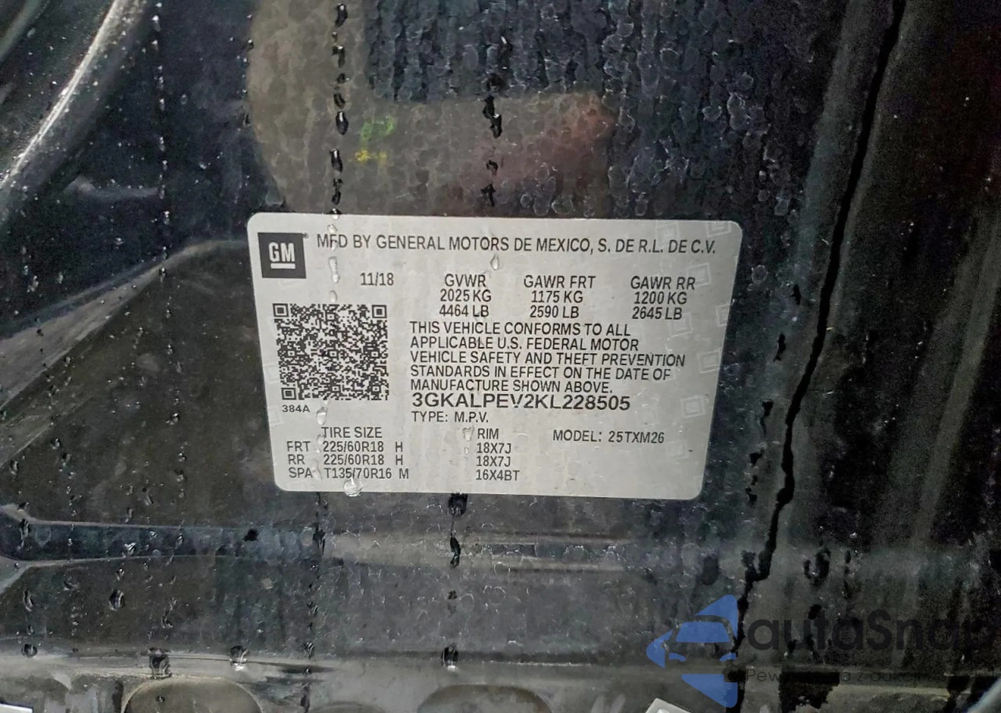 VIN: 3GKALPEV2KL228505