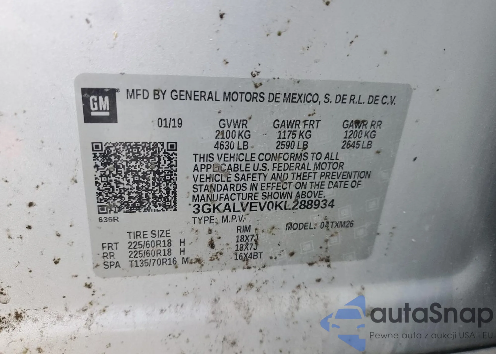 VIN: 3GKALVEV0KL288934