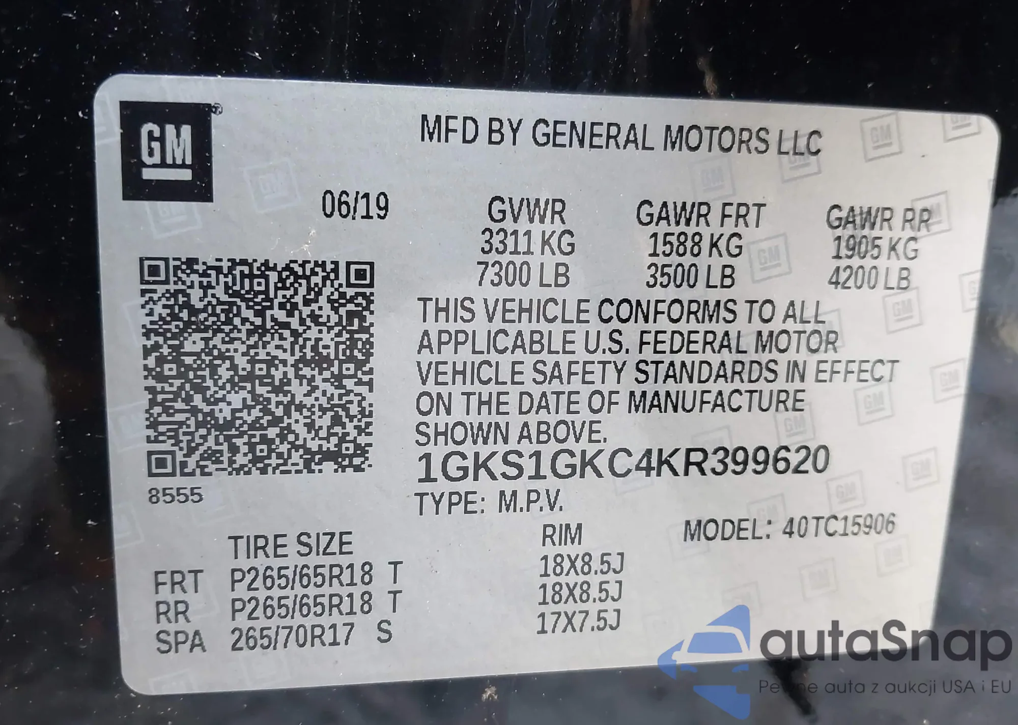 VIN: 1GKS1GKC4KR399620
