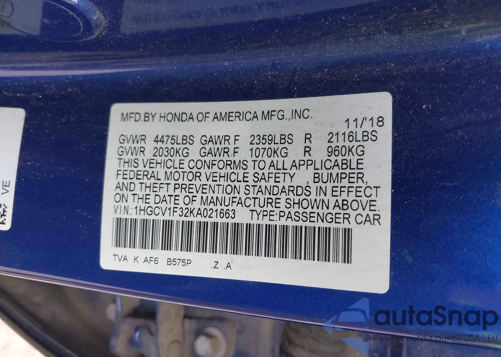 VIN: 1HGCV1F32KA021663
