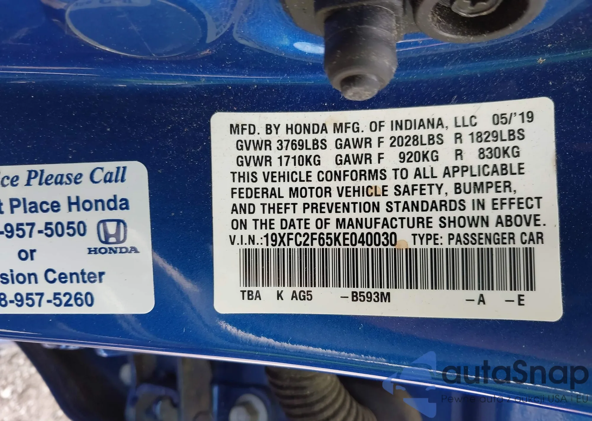VIN: 19XFC2F65KE040030