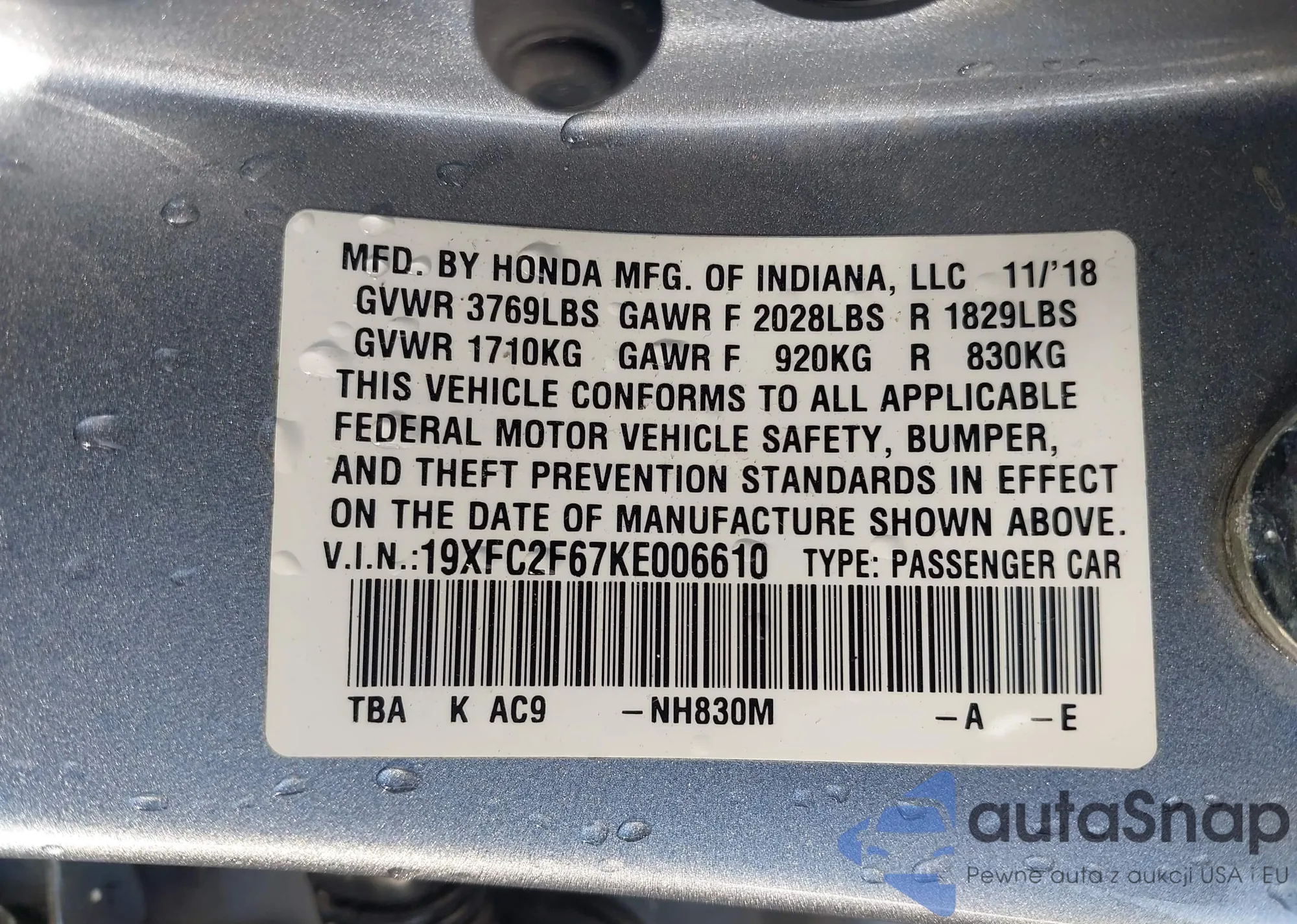 The car Honda Civic 2019 (VIN 19XFC2F67KE006610) has not been auctioned before. The documents are clean, and the mileage matches or is below the market average. Sold by an insurance company – we recommend purchase. Delivery to the port will take approx. 6–8 weeks.