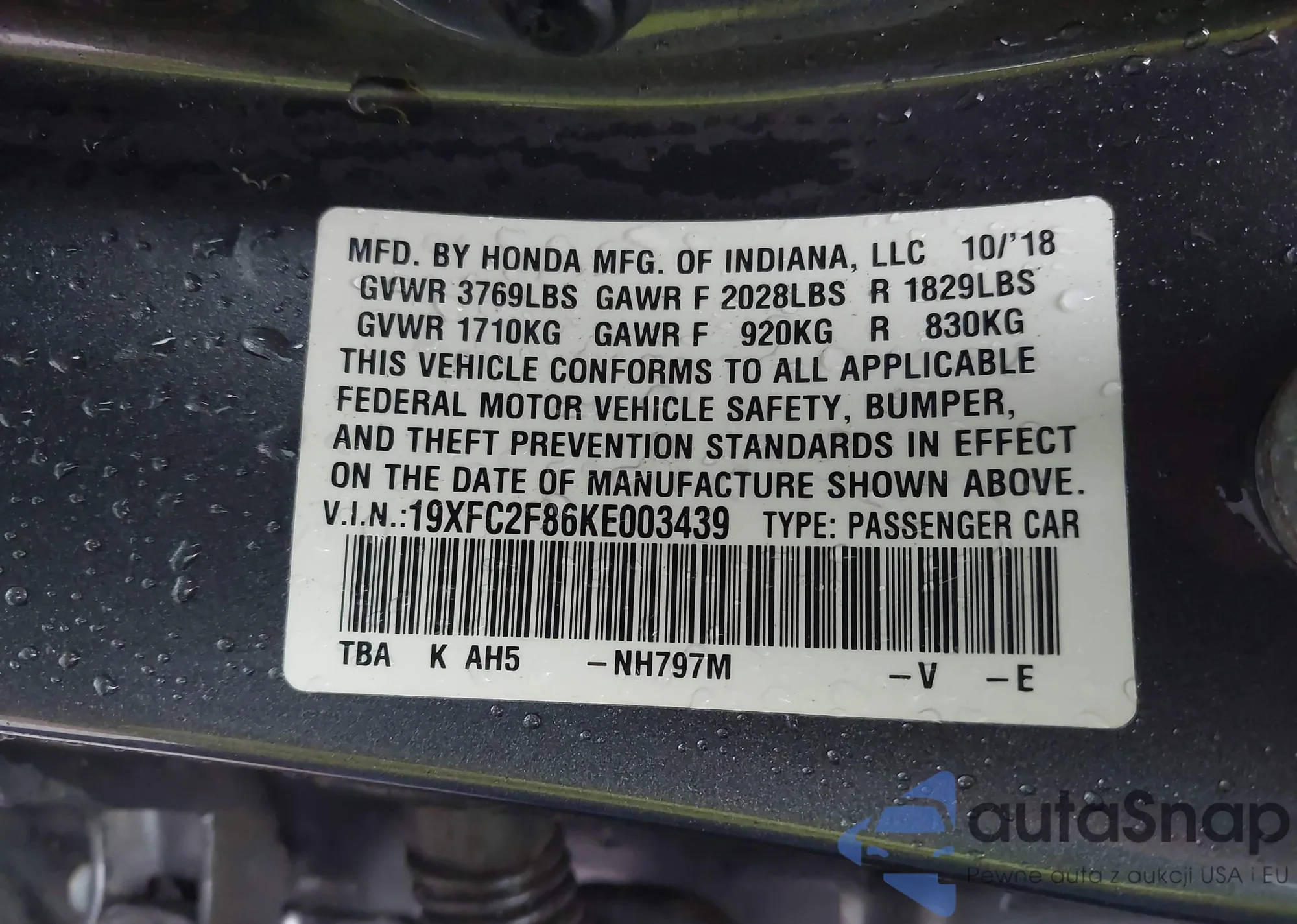 The car Honda Civic 2019 (VIN 19XFC2F86KE003439) has not been auctioned before. The documents are clean, and the mileage matches or is below the market average. Sold by an insurance company – we recommend purchase. Delivery to the port will take approx. 6–8 weeks.