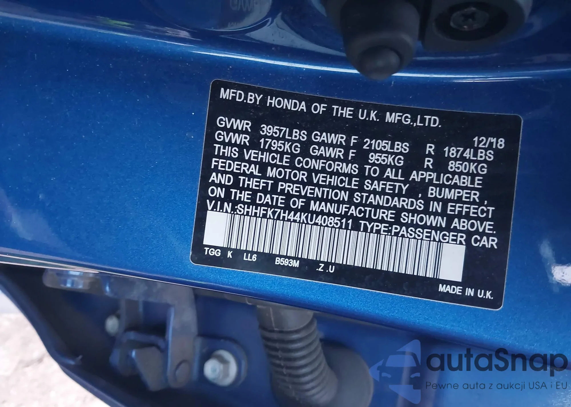 The car Honda Civic 2019 (VIN SHHFK7H44KU408511) has not been auctioned before. The documents are clean, and the mileage matches or is below the market average. Sold by an insurance company – we recommend purchase. Delivery to the port will take approx. 6–8 weeks.