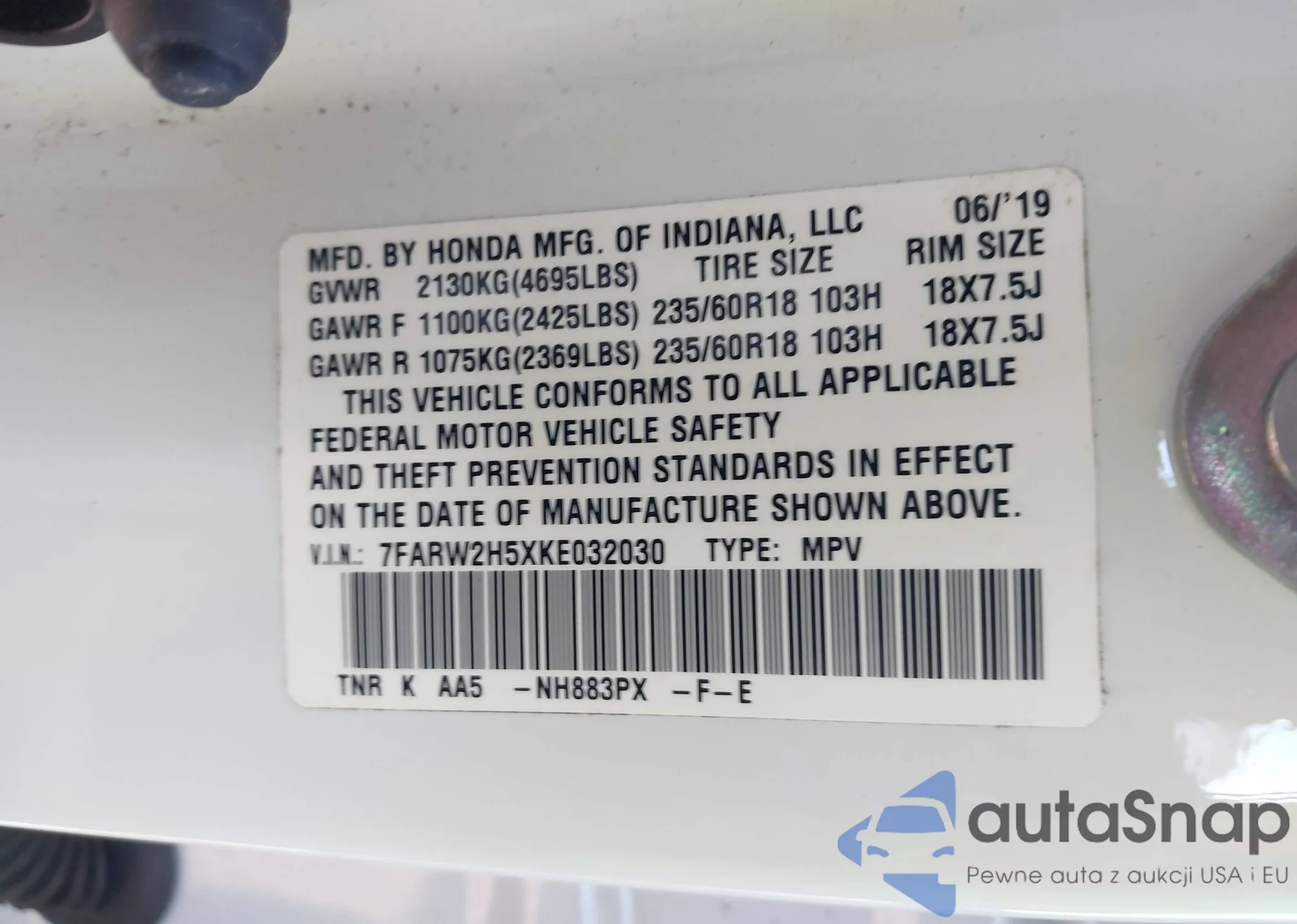 VIN: 7FARW2H5XKE032030