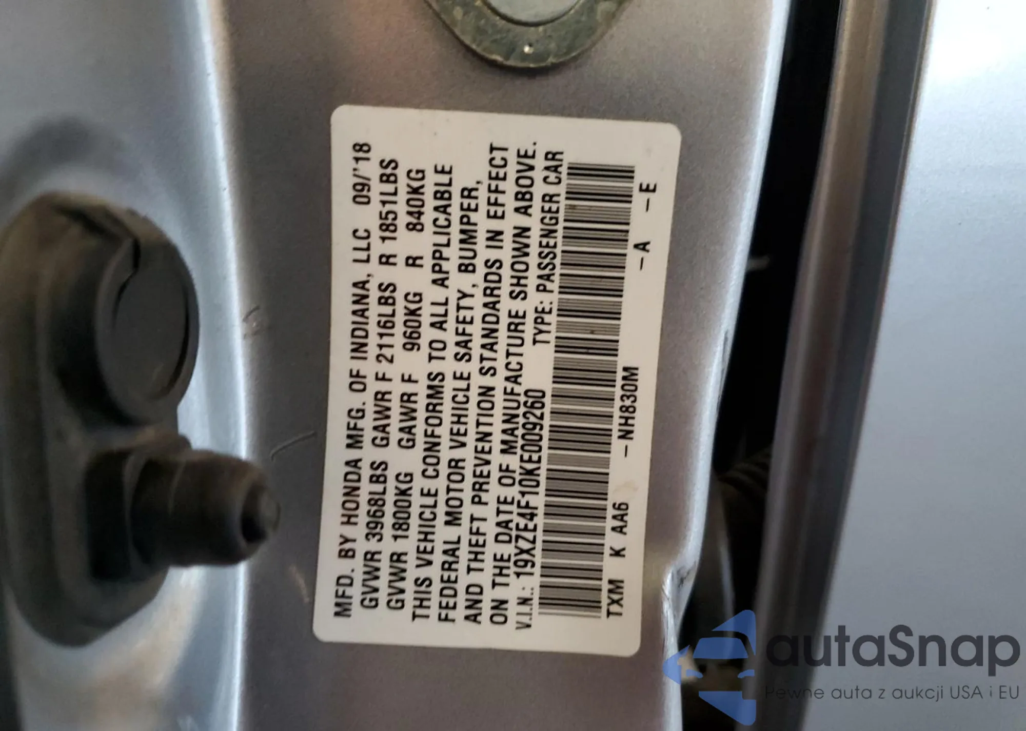 VIN: 19XZE4F10KE009260