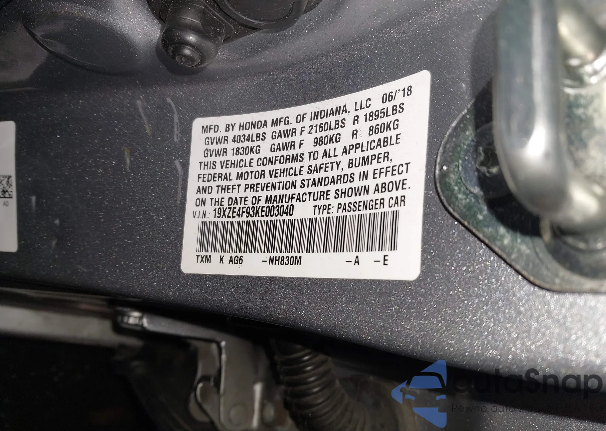 • VIN: 19XZE4F93KE003040