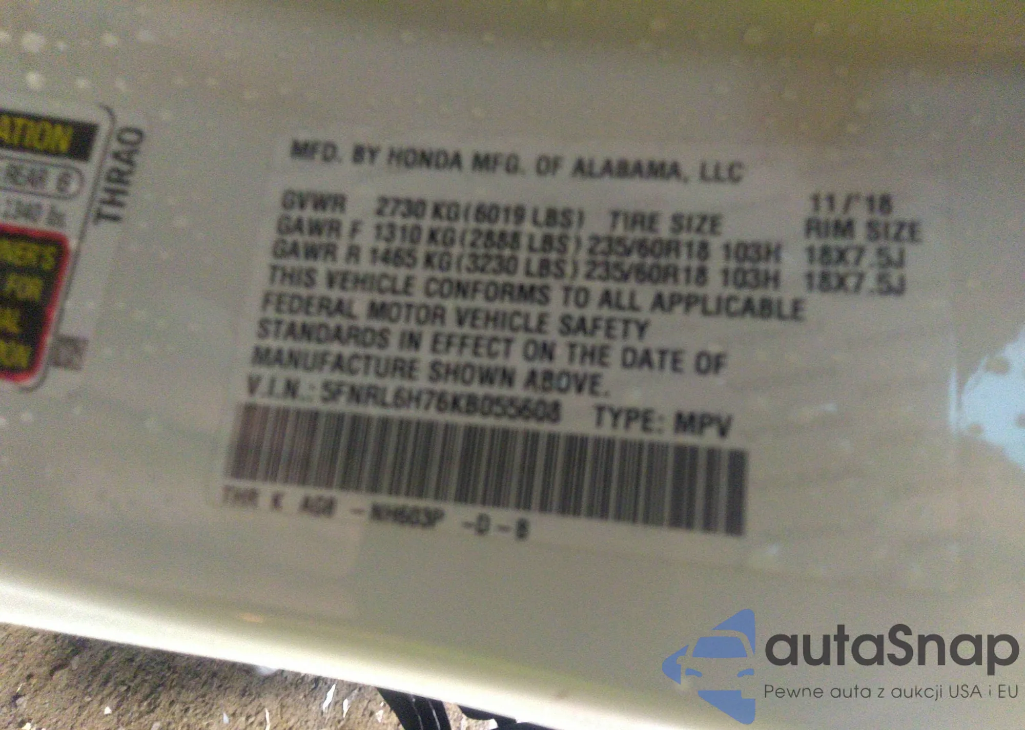 The car Honda Odyssey 2019 (VIN 5FNRL6H76KB055608) has not been auctioned before. The documents are clean, and the mileage matches or is below the market average. Sold by an insurance company – we recommend purchase. Delivery to the port will take approx. 6–8 weeks.