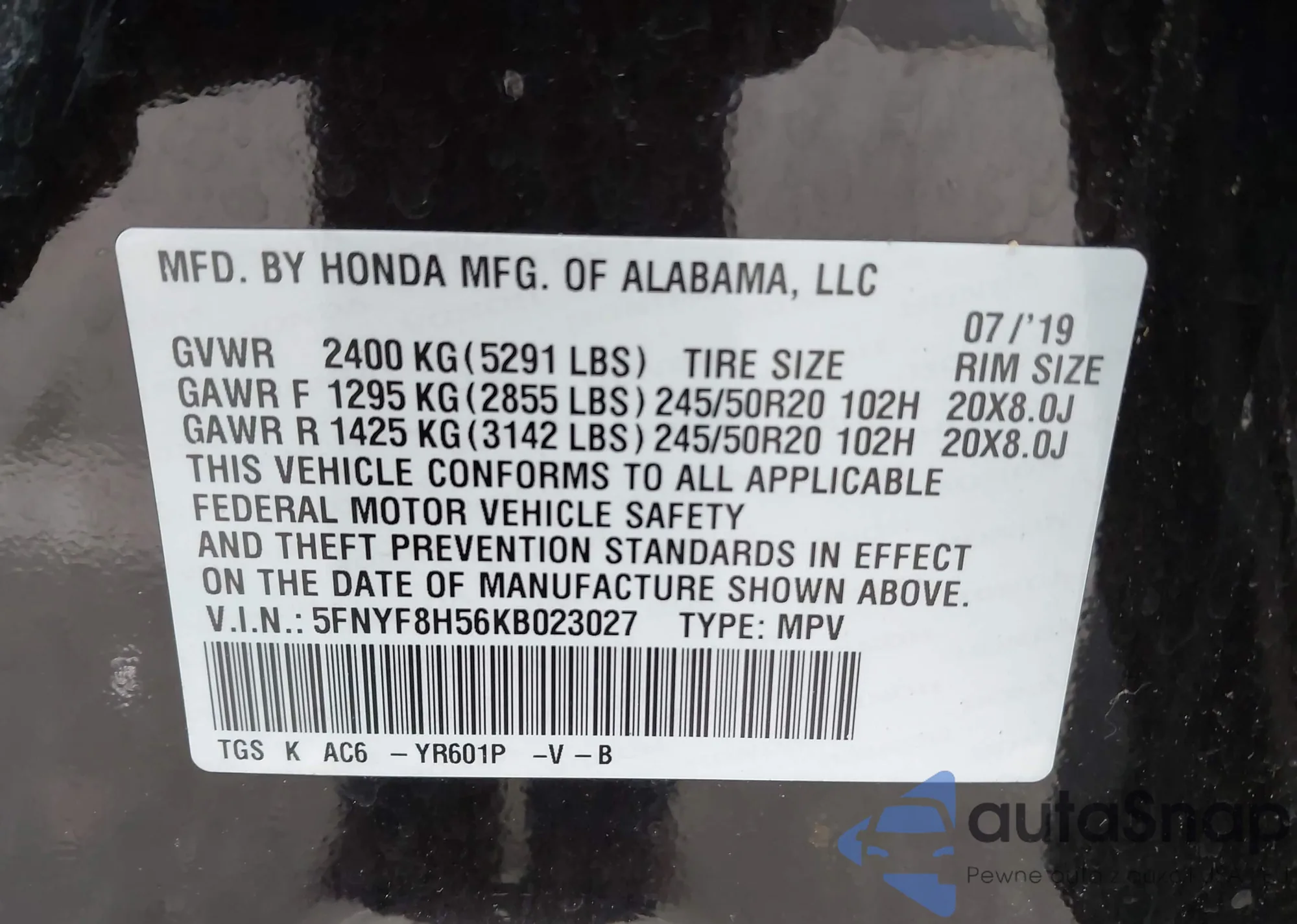 • VIN: 5FNYF8H56KB023027