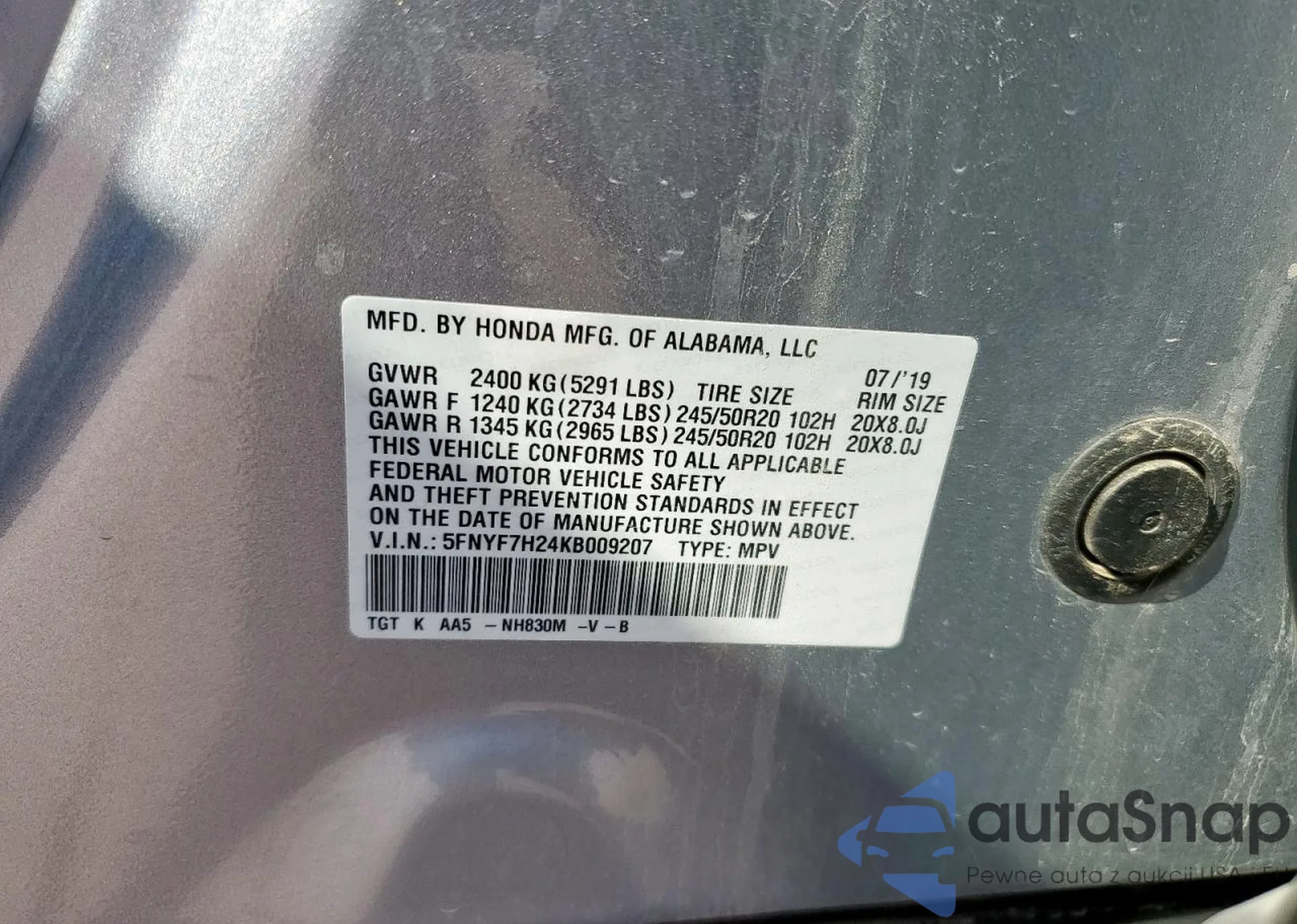 VIN: 5FNYF7H24KB009207