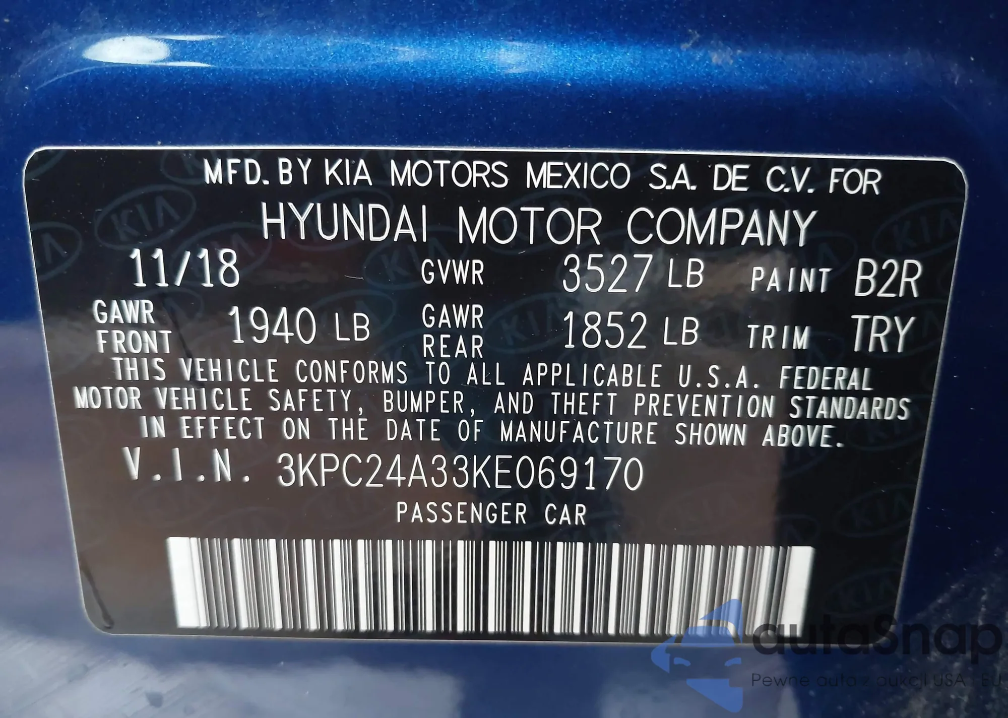 VIN: 3KPC24A33KE069170