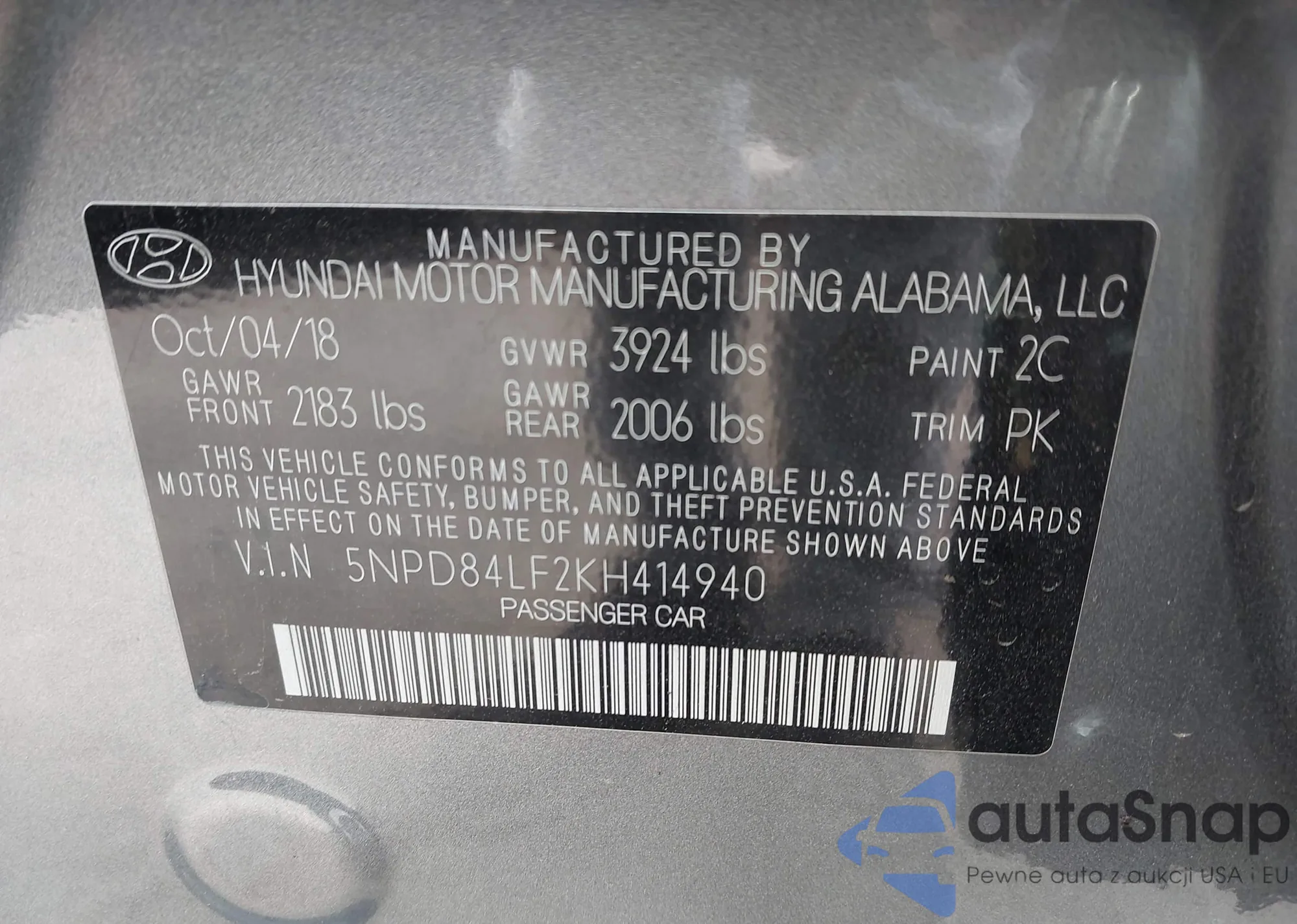 VIN: 5NPD84LF2KH414940