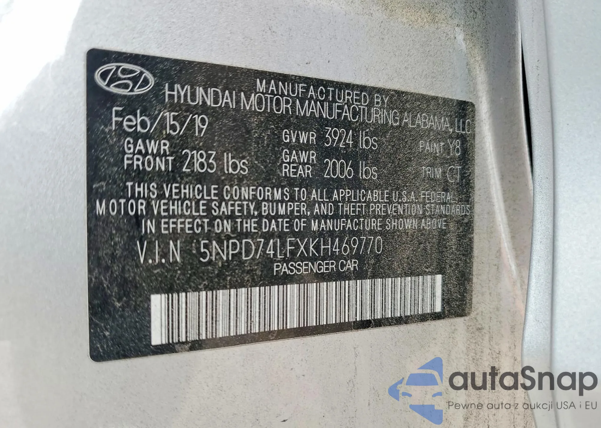 The car Hyundai Elantra 2019 (VIN 5NPD74LFXKH469770) is sold by an unverified seller. We recommend checking the Carfax report and confirming registration possibilities before purchase.