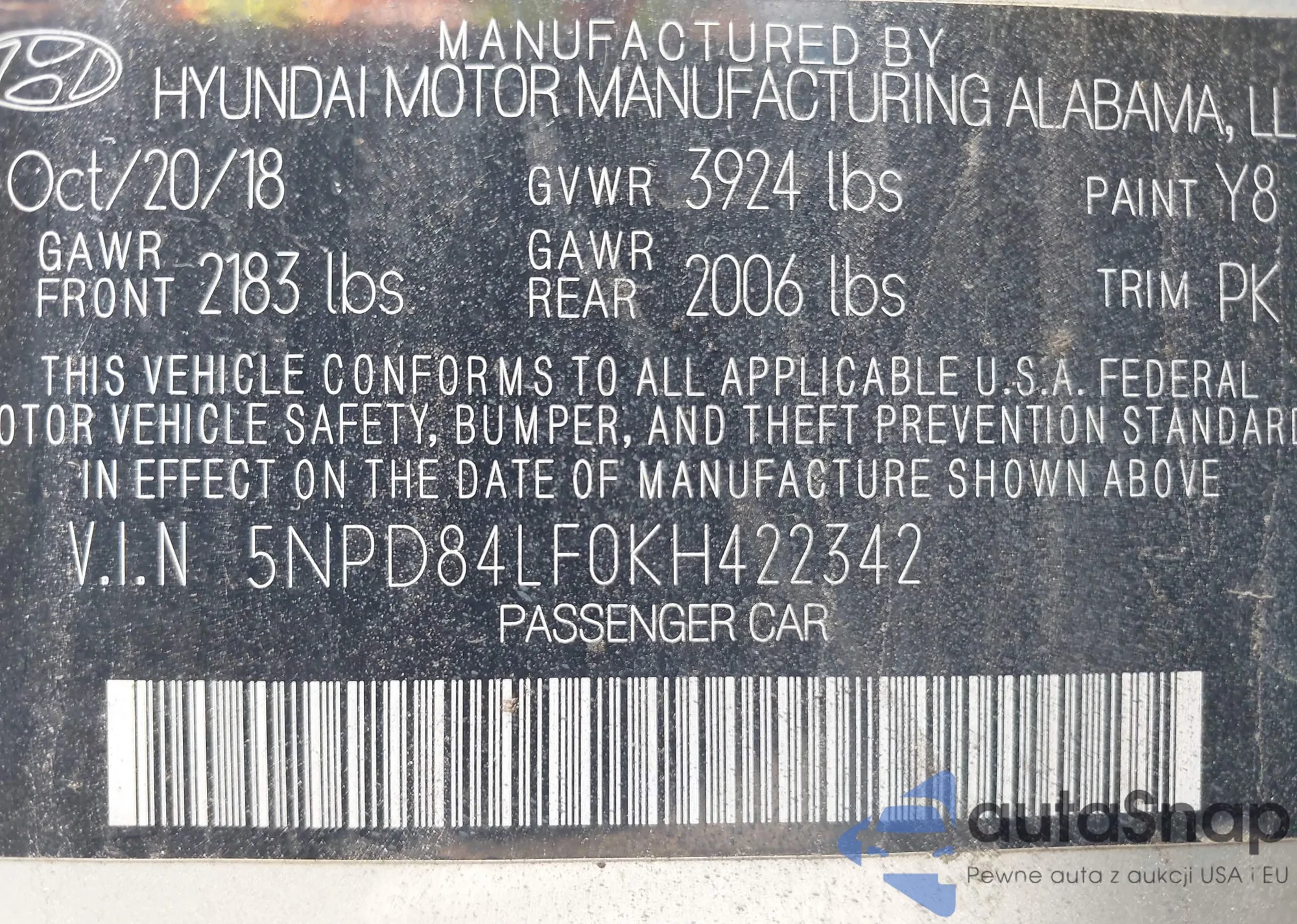 VIN: 5NPD84LF0KH422342