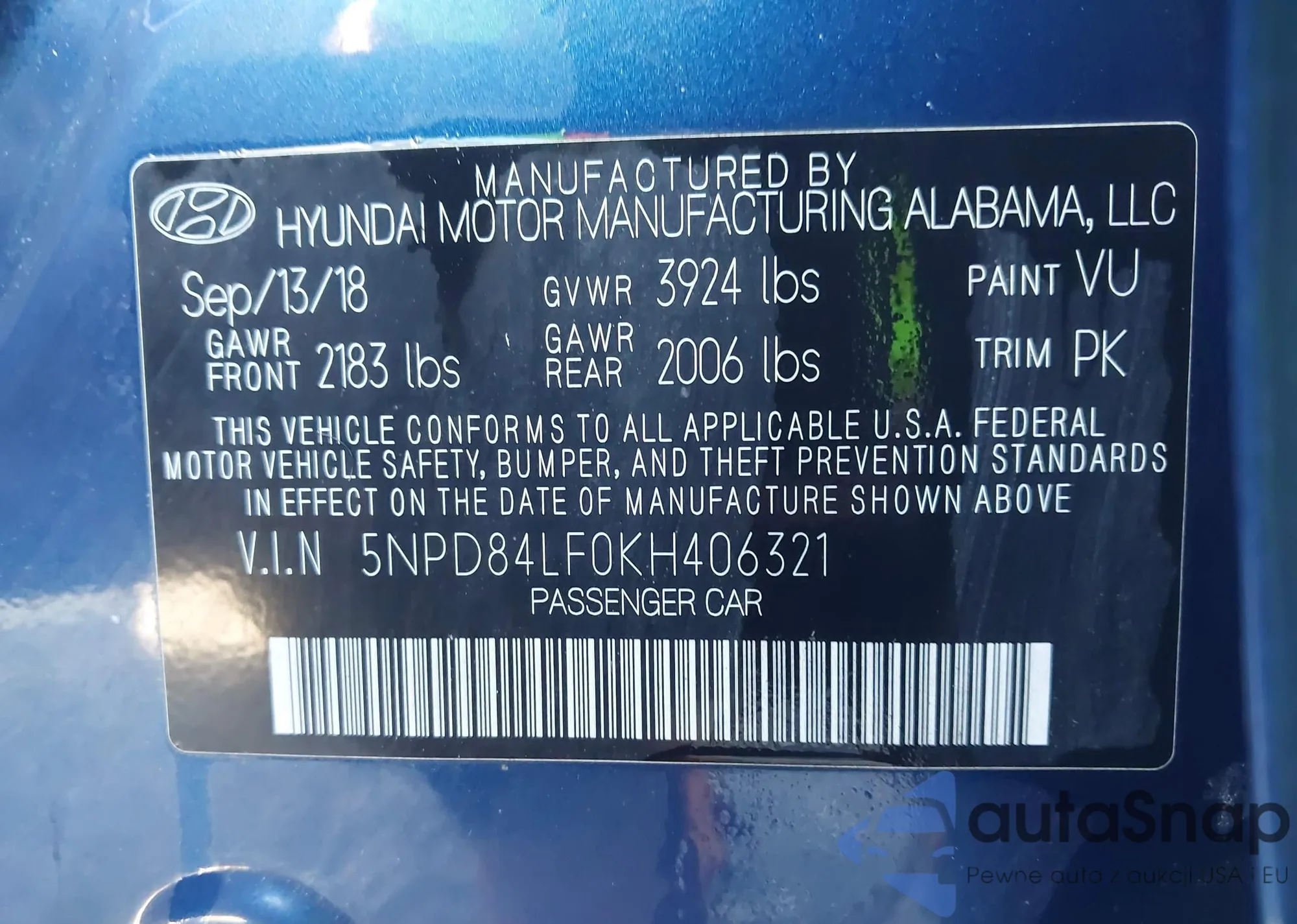 • VIN: 5NPD84LF0KH406321