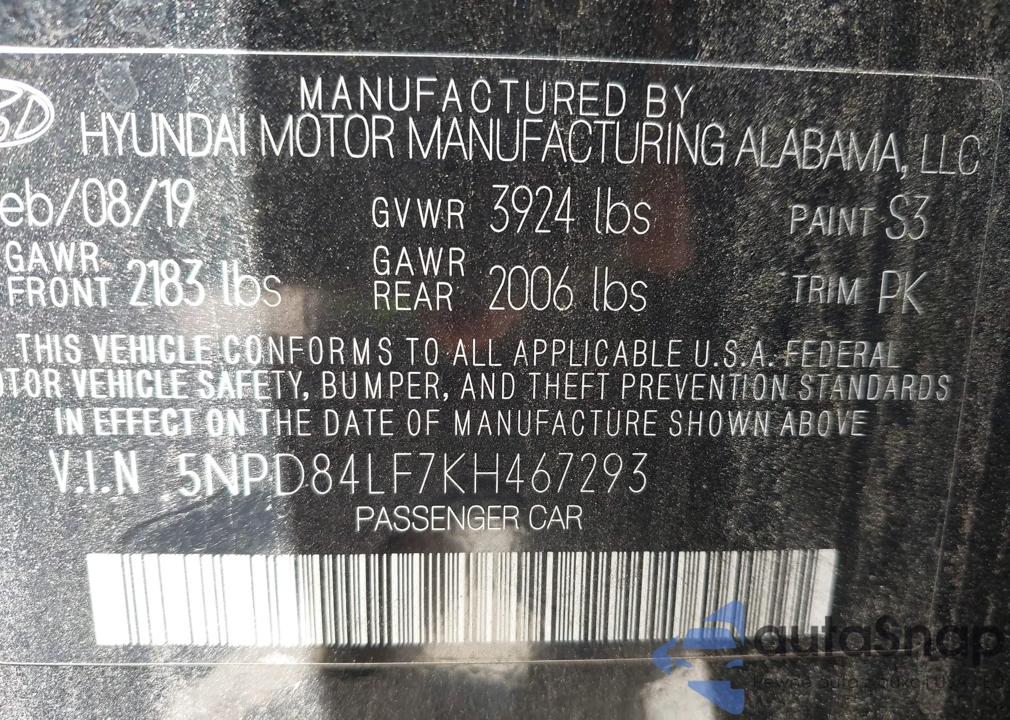 VIN: 5NPD84LF7KH467293