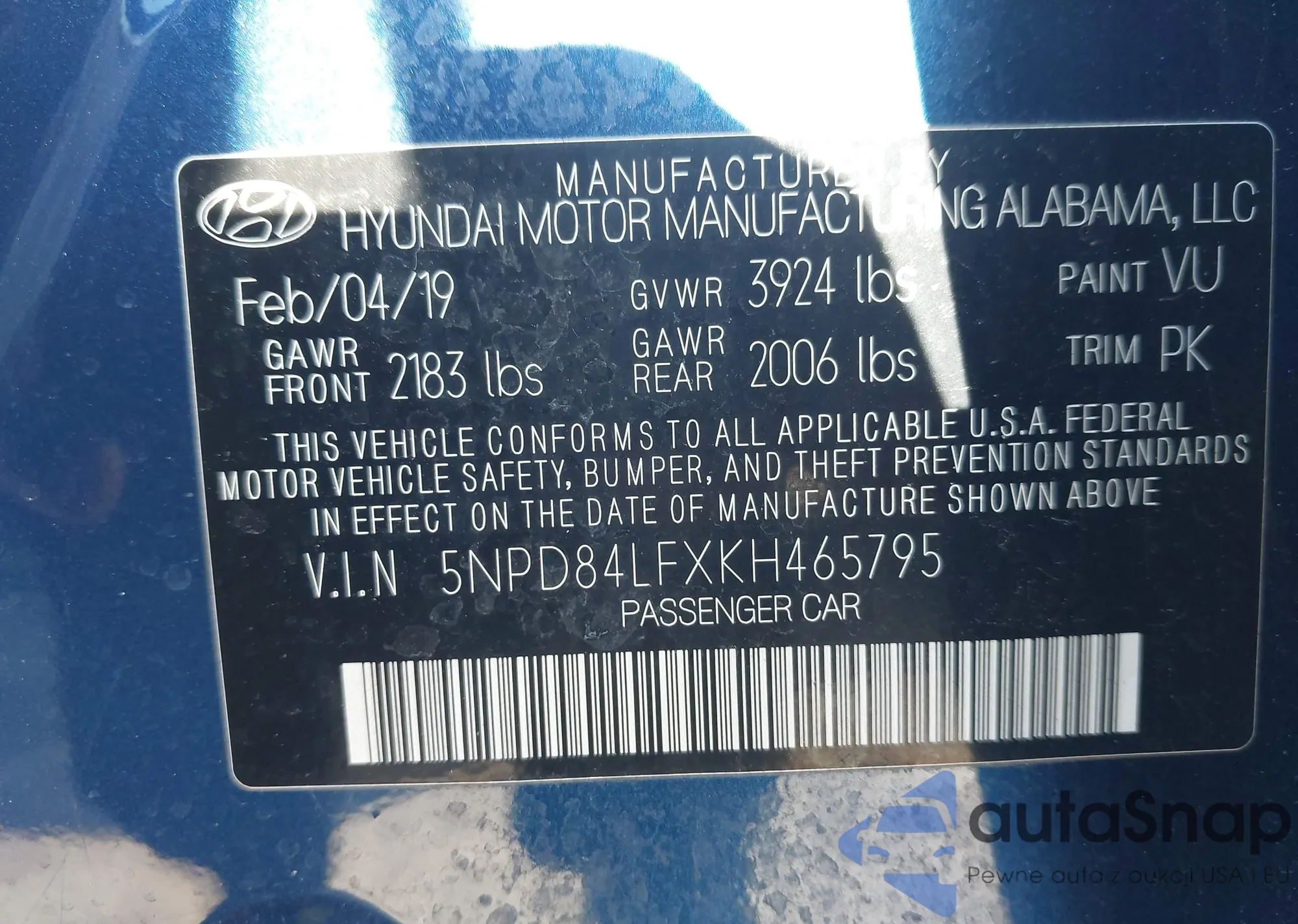 VIN: 5NPD84LFXKH465795