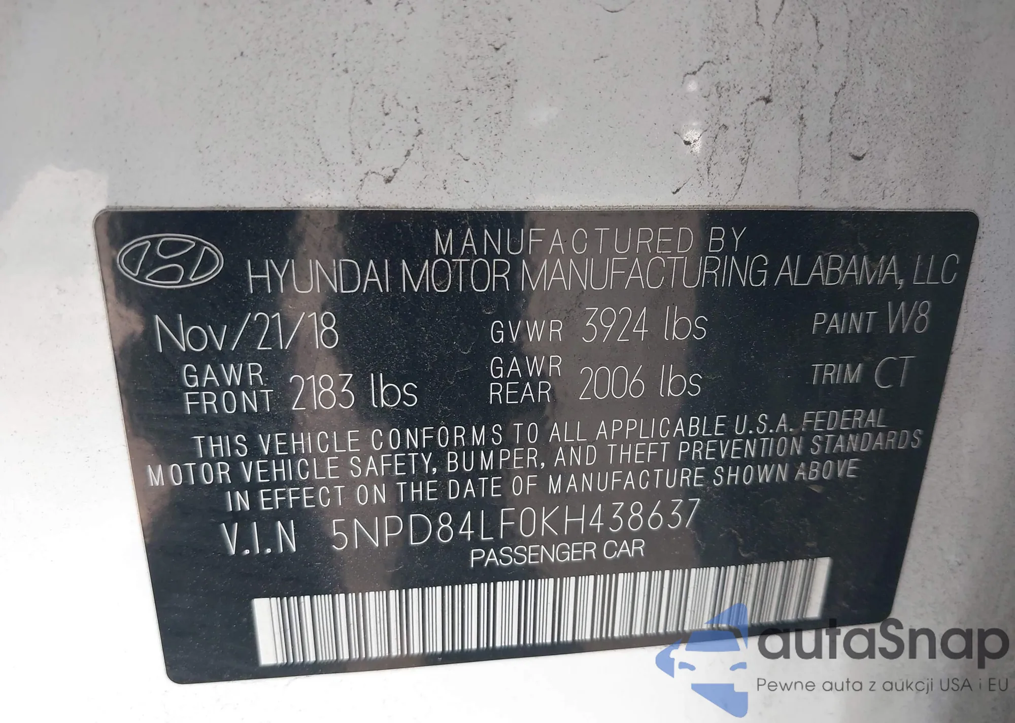 • VIN: 5NPD84LF0KH438637