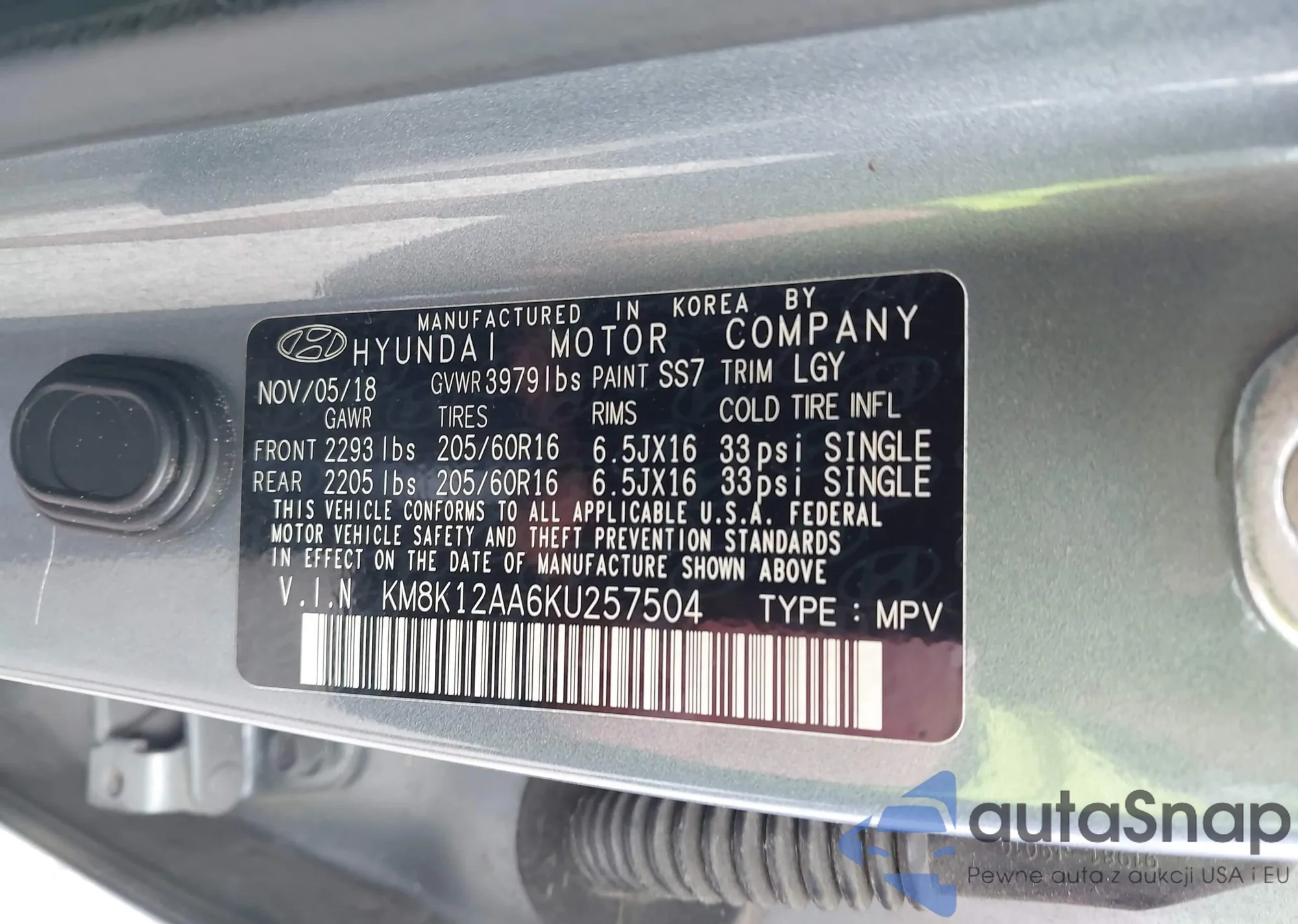 • VIN: KM8K12AA6KU257504