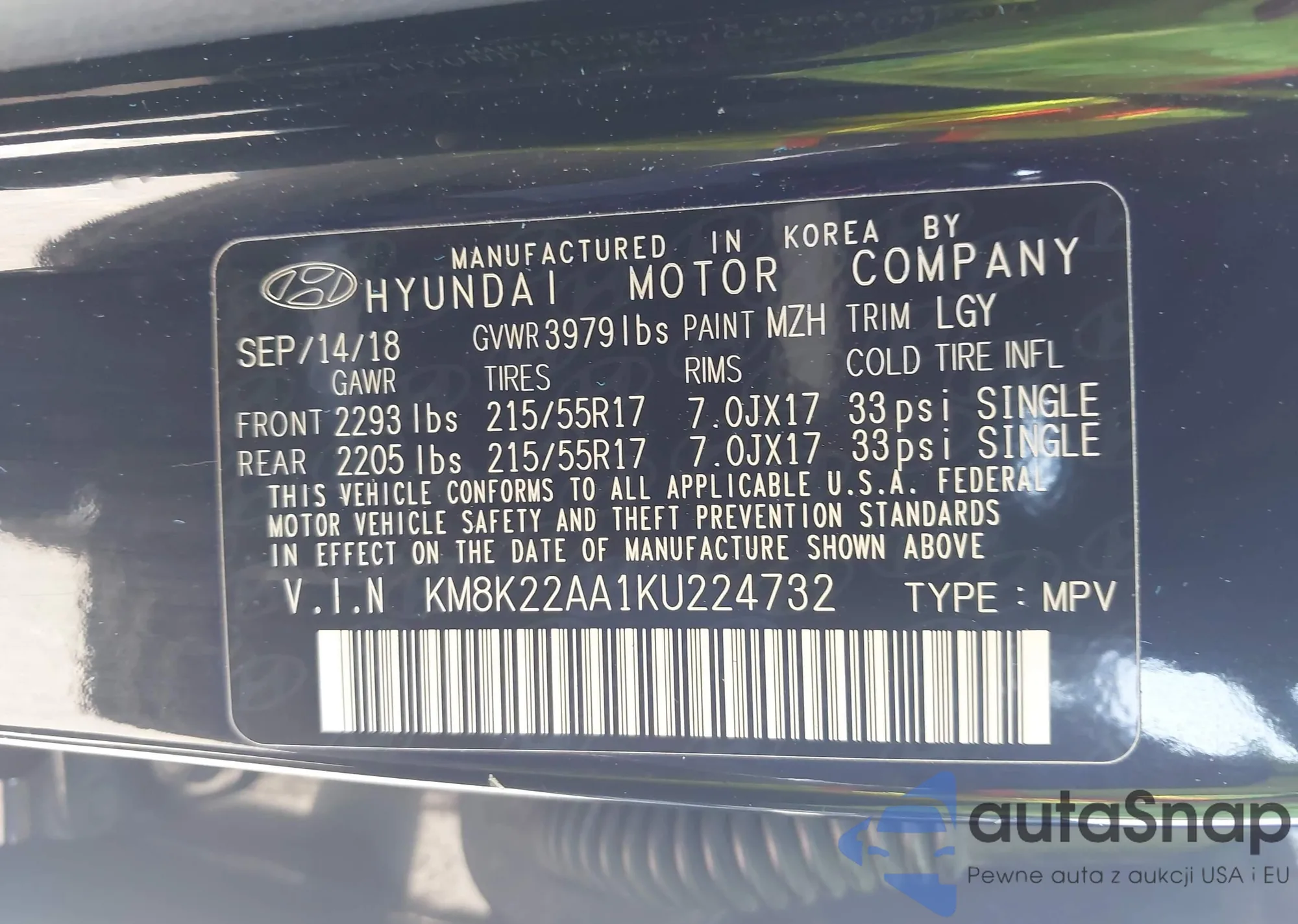 • VIN: KM8K22AA1KU224732