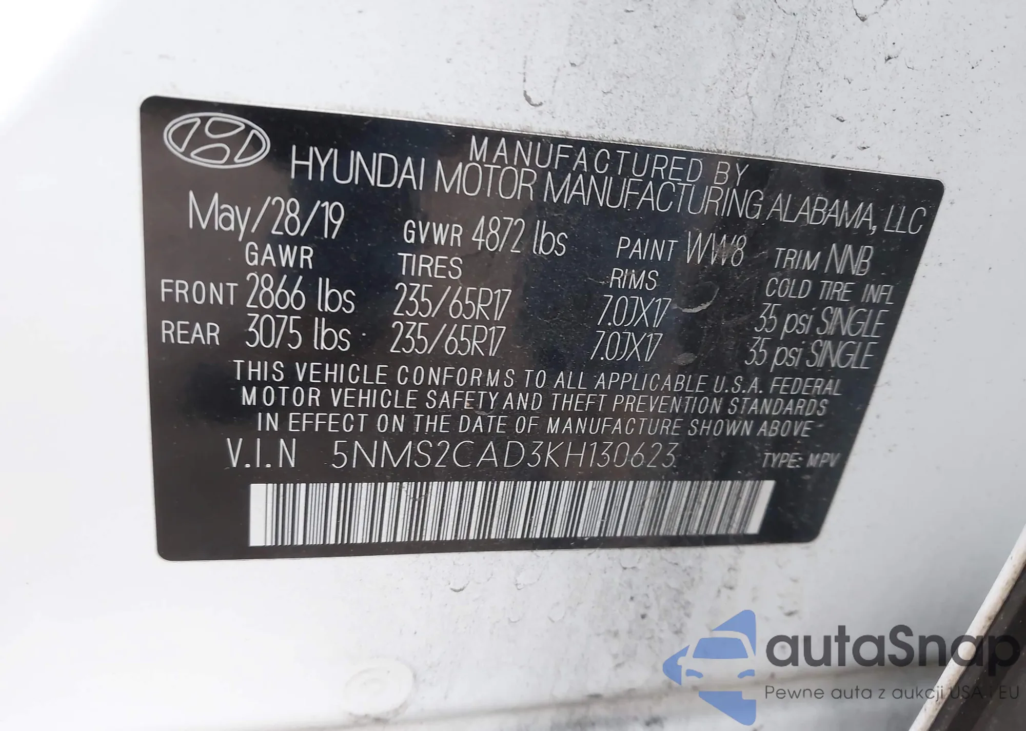 VIN: 5NMS2CAD3KH130623