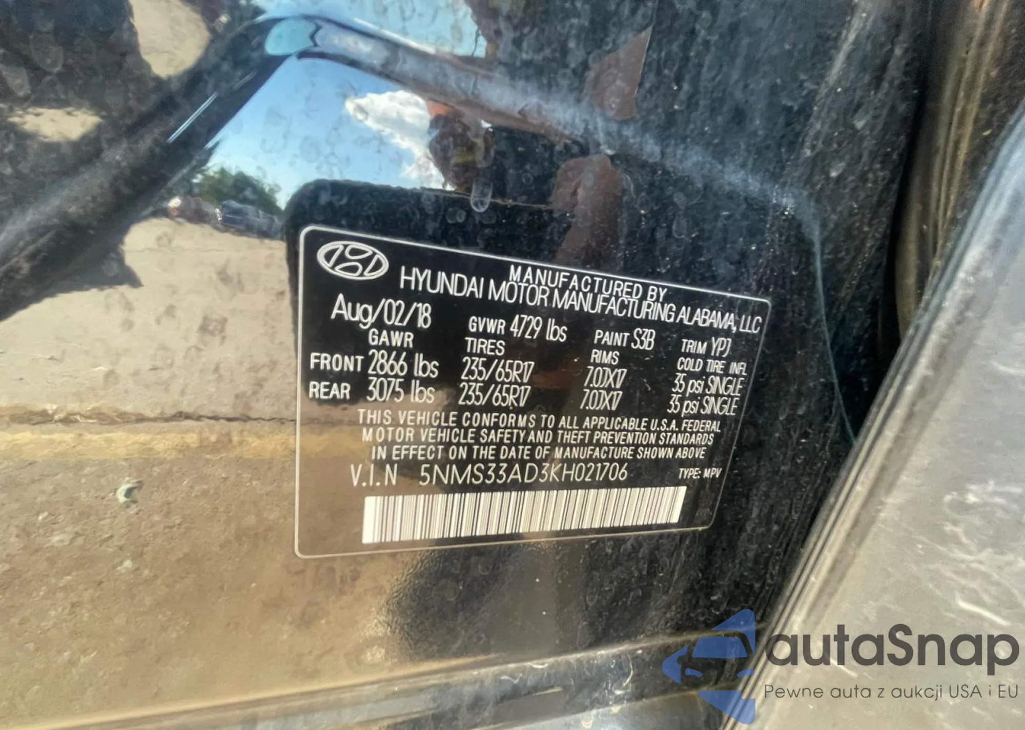 VIN: 5NMS33AD3KH021706