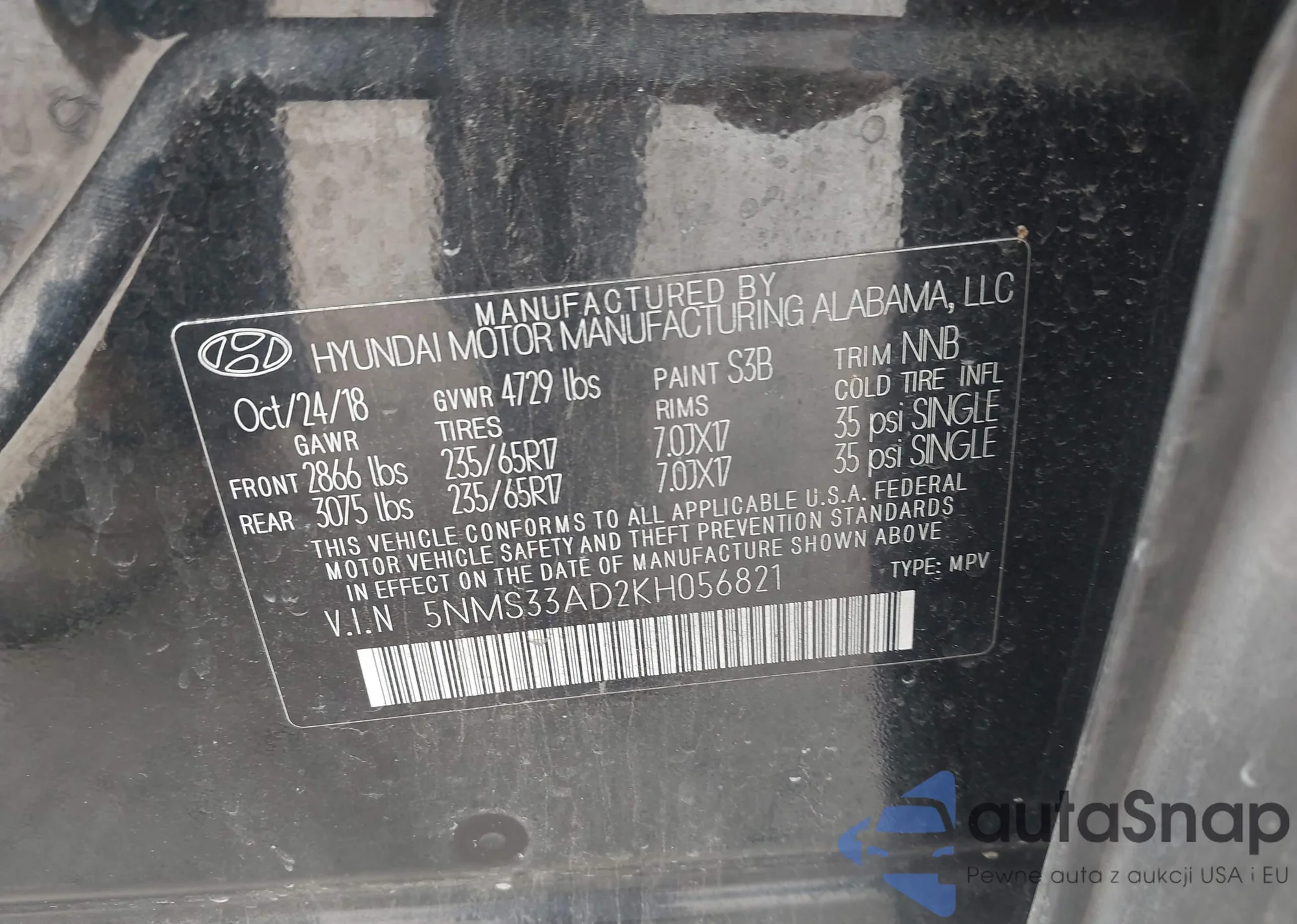 The car Hyundai Santa Fe 2019 (VIN 5NMS33AD2KH056821) has not been auctioned before. The documents are clean, and the mileage matches or is below the market average. Sold by an insurance company – we recommend purchase. Delivery to the port will take approx. 6–8 weeks.