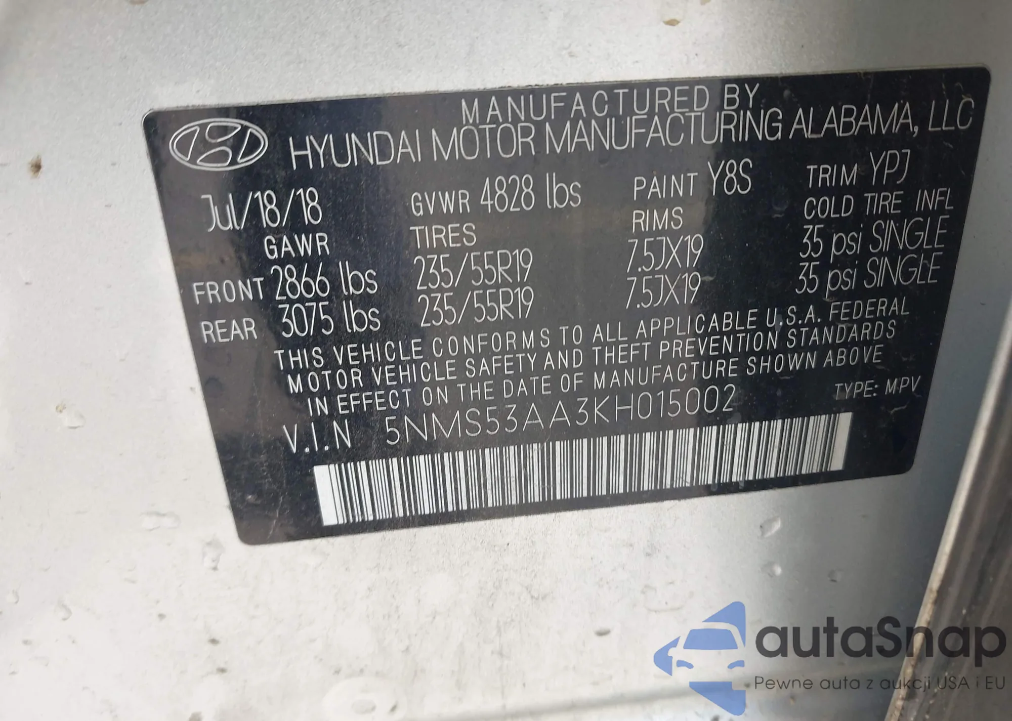 VIN: 5NMS53AA3KH015002